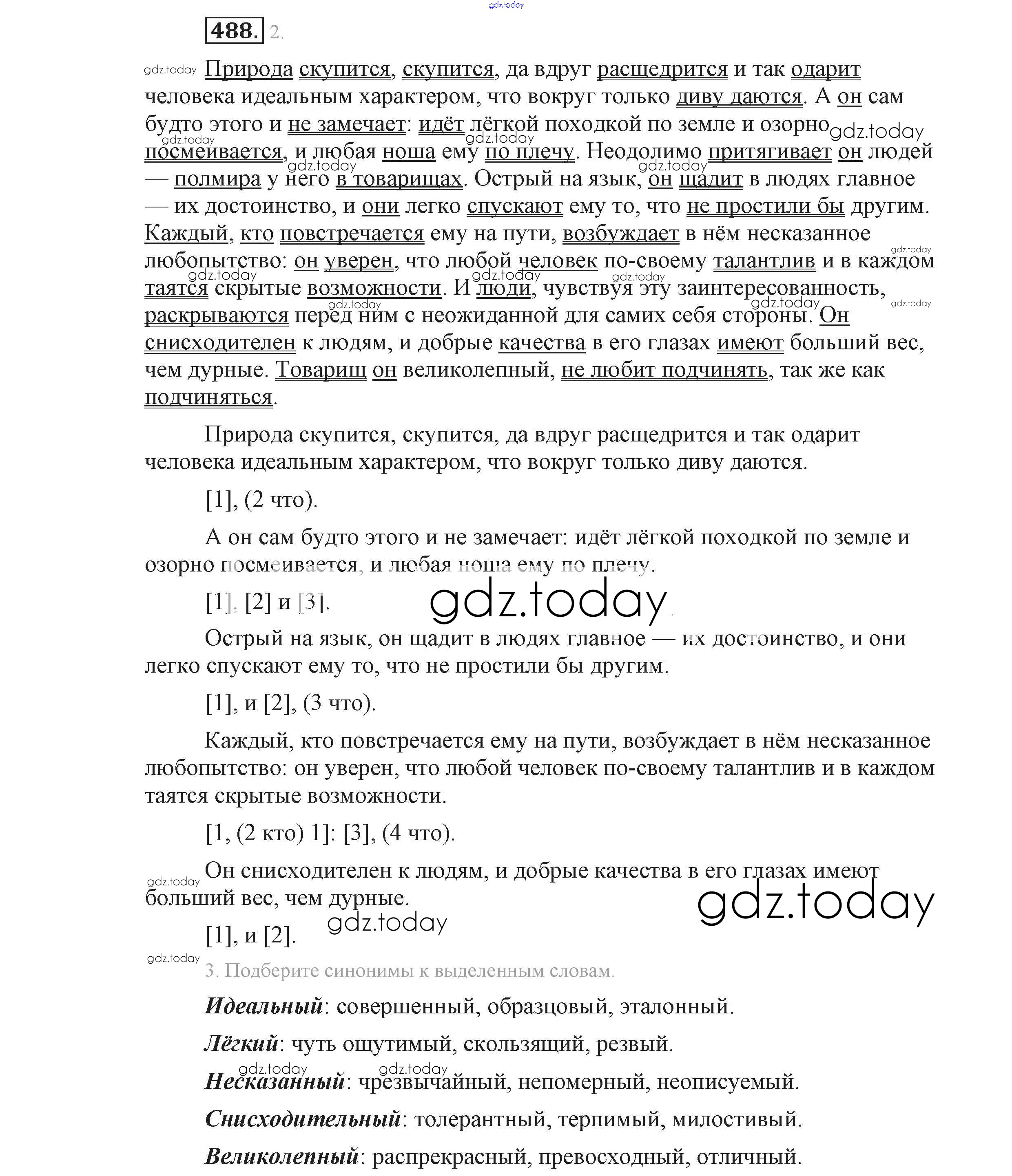 На страницах сайта gdz.today вы найдете учебный и вспомогательный материал, направленный на улучшения знаний школьной программы. ГДЗ - онлайн мир знаний Решение к упражнениям 488 Учебнику по Русскому языку для 9 класса Львова, Львов Мнемозина 2016