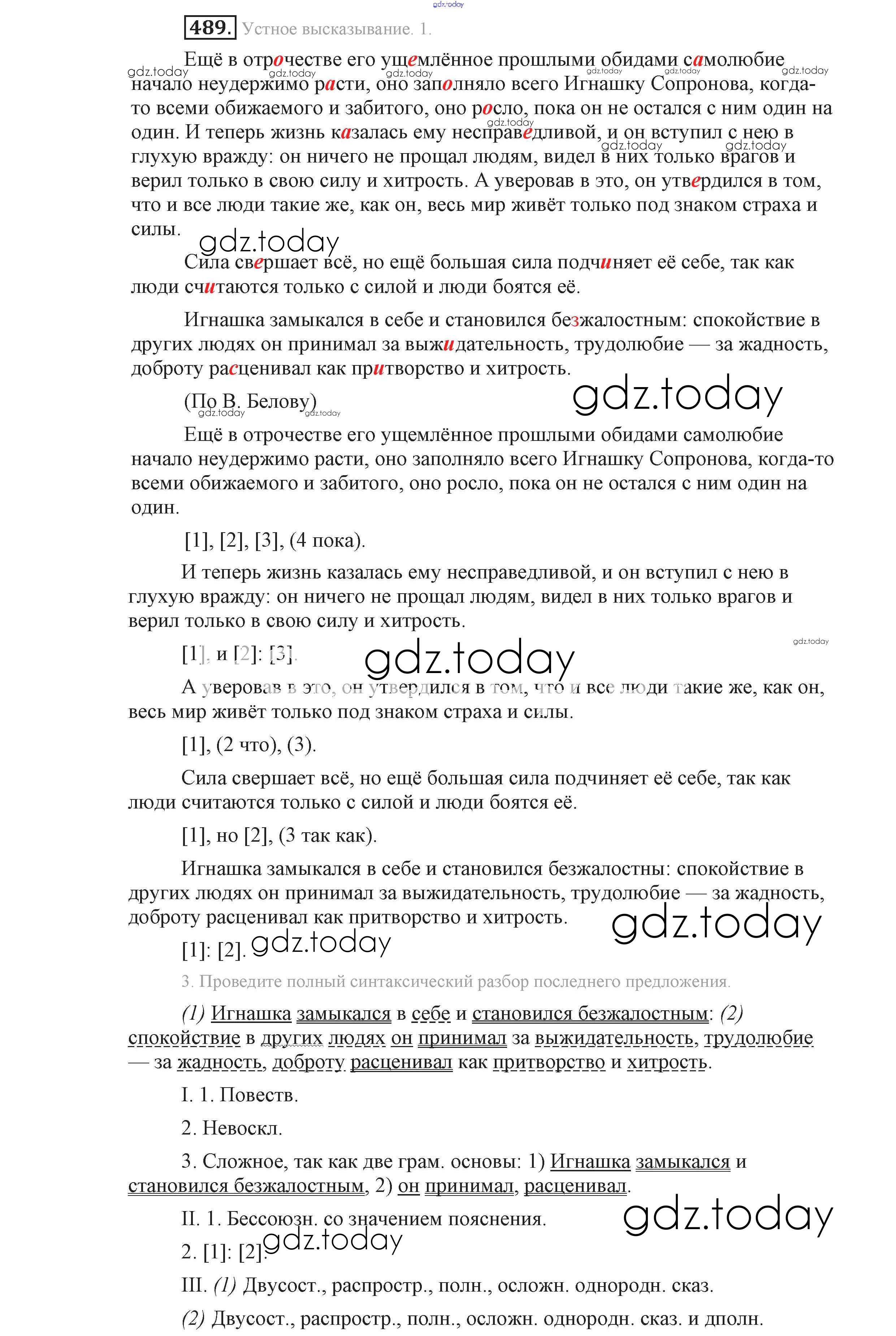 На страницах сайта gdz.today вы найдете учебный и вспомогательный материал, направленный на улучшения знаний школьной программы. ГДЗ - онлайн мир знаний Решение к упражнениям 489 Учебнику по Русскому языку для 9 класса Львова, Львов Мнемозина 2016