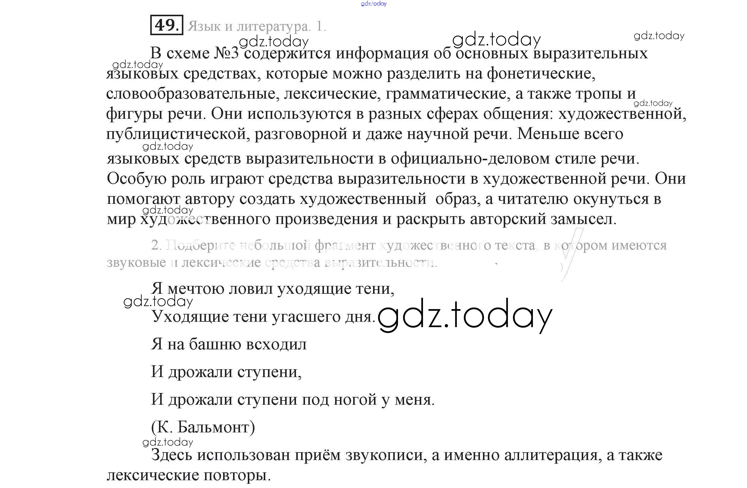 Ответы к Решение к упражнениям 49 Учебнику по Русскому языку для 9 класса Львова, Львов Мнемозина 2016