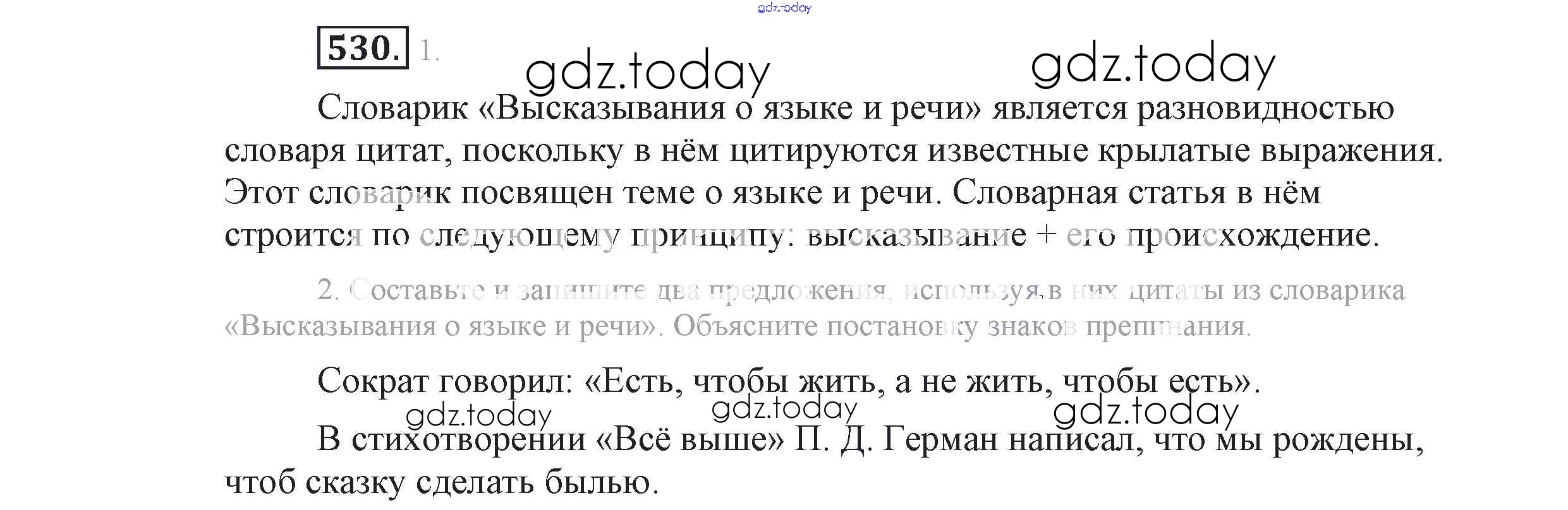 На страницах сайта gdz.today вы найдете учебный и вспомогательный материал, направленный на улучшения знаний школьной программы. ГДЗ - онлайн мир знаний Решение к упражнениям 530 Учебнику по Русскому языку для 9 класса Львова, Львов Мнемозина 2016