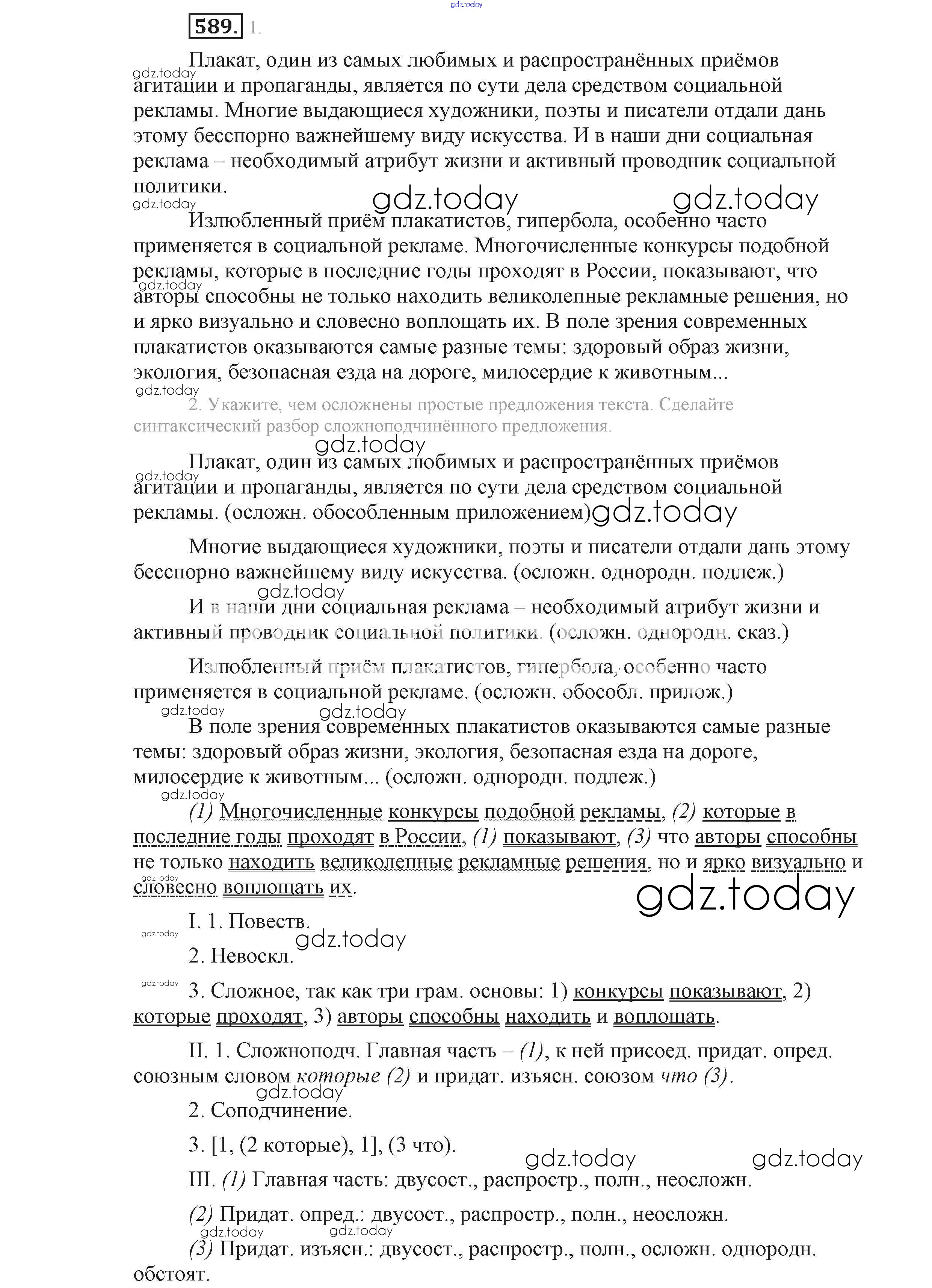 На страницах сайта gdz.today вы найдете учебный и вспомогательный материал, направленный на улучшения знаний школьной программы. ГДЗ - онлайн мир знаний Решение к упражнениям 589 Учебнику по Русскому языку для 9 класса Львова, Львов Мнемозина 2016