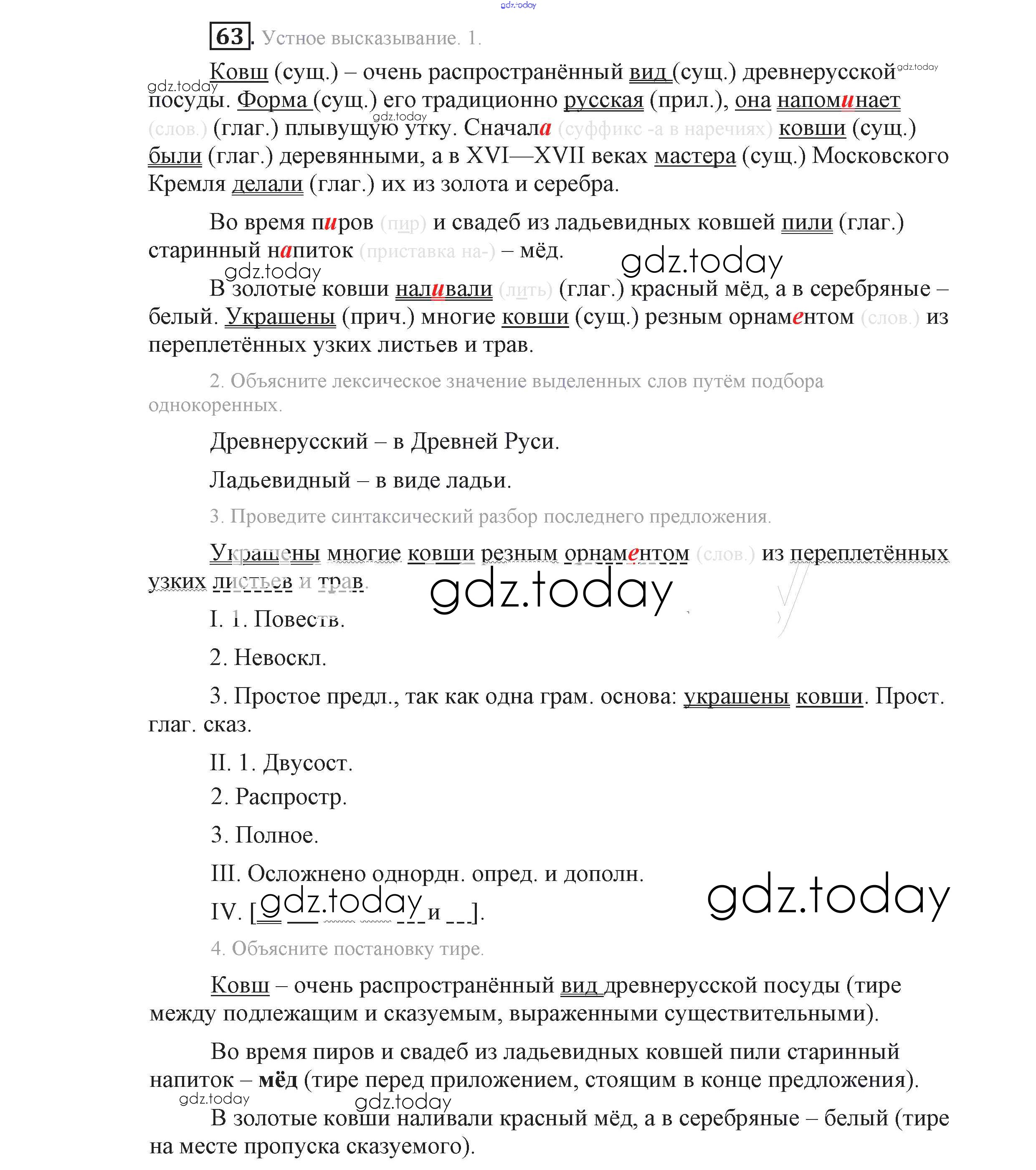 На страницах сайта gdz.today вы найдете учебный и вспомогательный материал, направленный на улучшения знаний школьной программы. ГДЗ - онлайн мир знаний Решение к упражнениям 63 Учебнику по Русскому языку для 9 класса Львова, Львов Мнемозина 2016