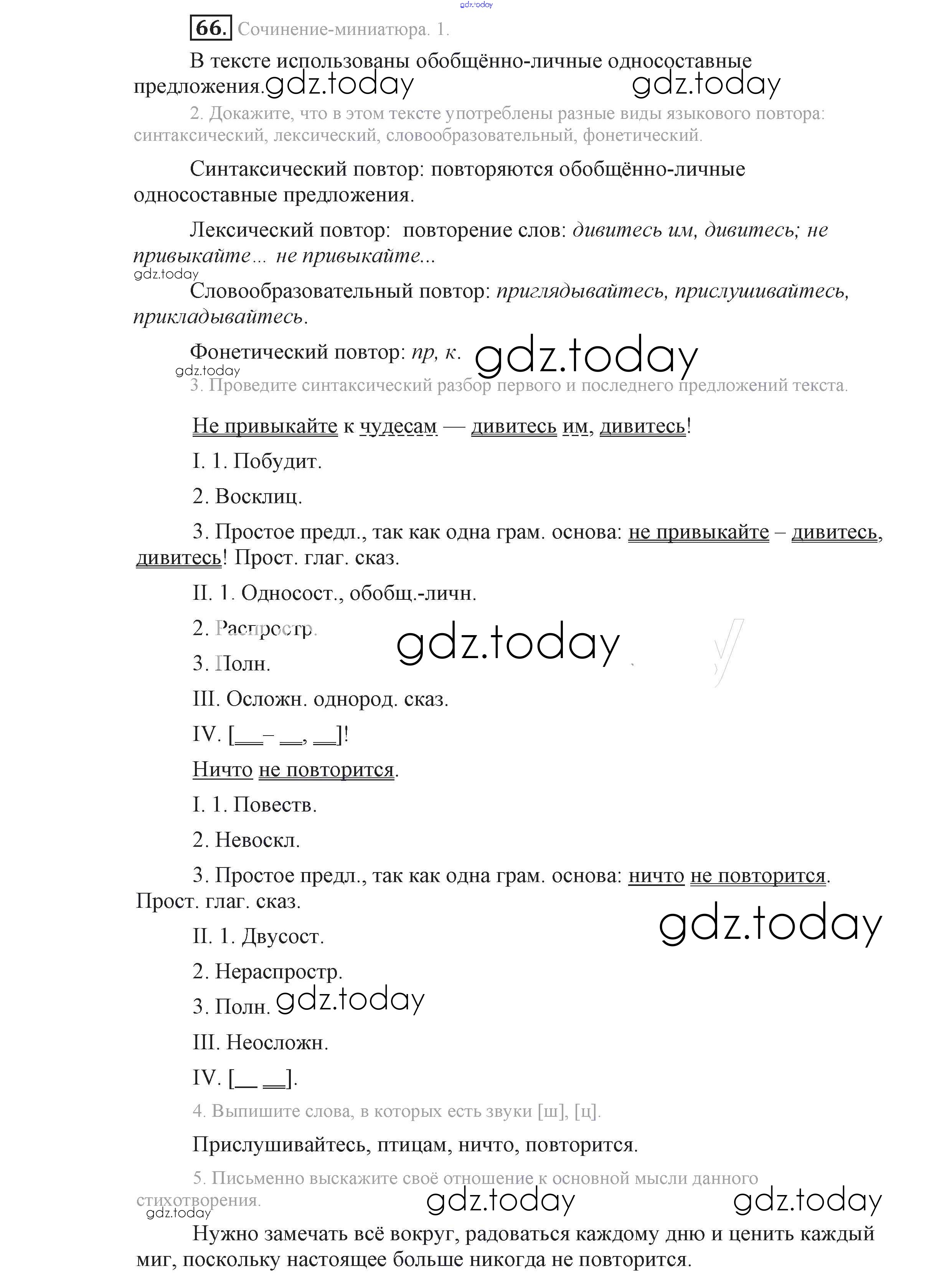 На страницах сайта gdz.today вы найдете учебный и вспомогательный материал, направленный на улучшения знаний школьной программы. ГДЗ - онлайн мир знаний Решение к упражнениям 66 Учебнику по Русскому языку для 9 класса Львова, Львов Мнемозина 2016