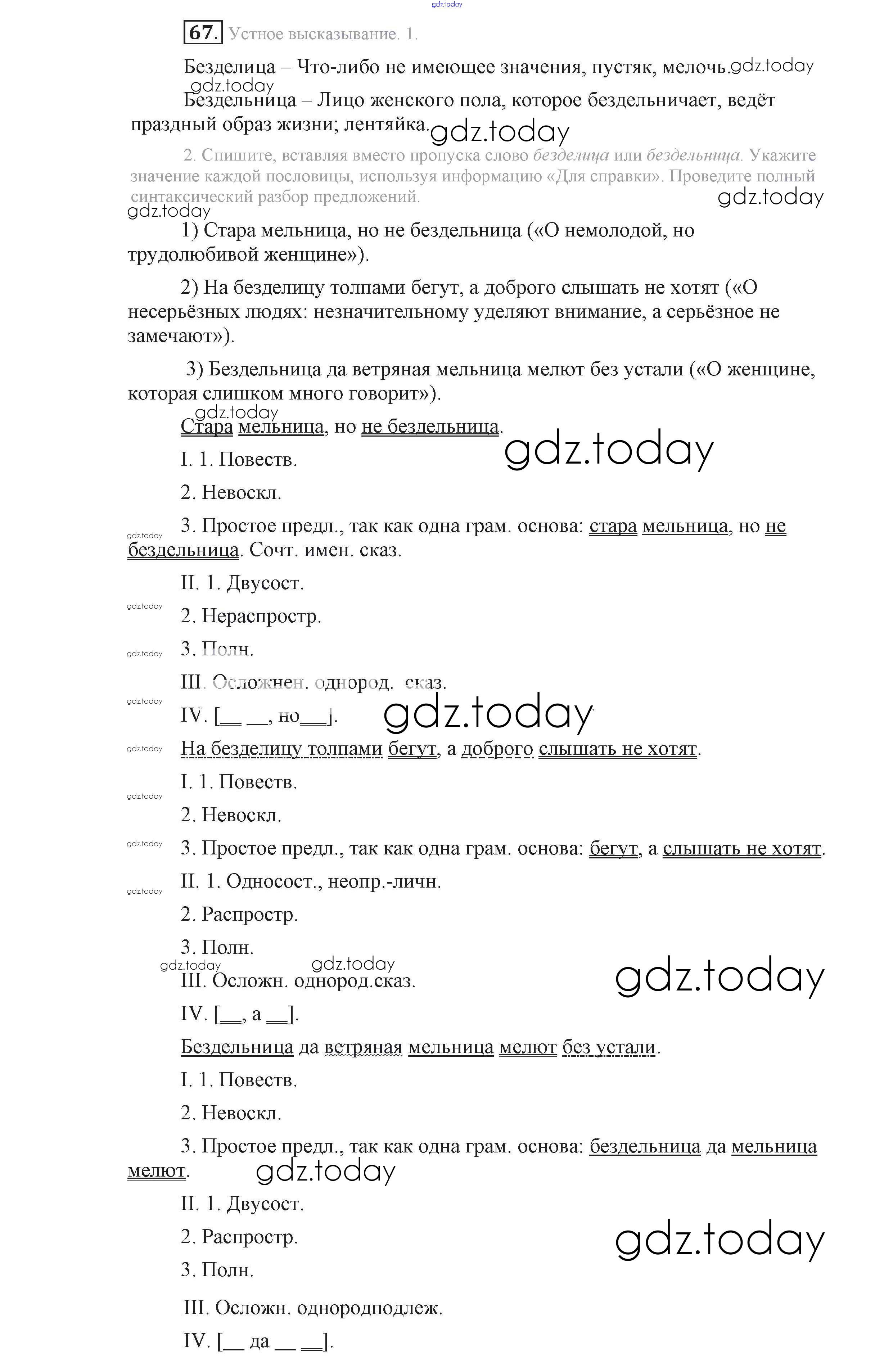 Ответы к Решение к упражнениям 67 Учебнику по Русскому языку для 9 класса Львова, Львов Мнемозина 2016