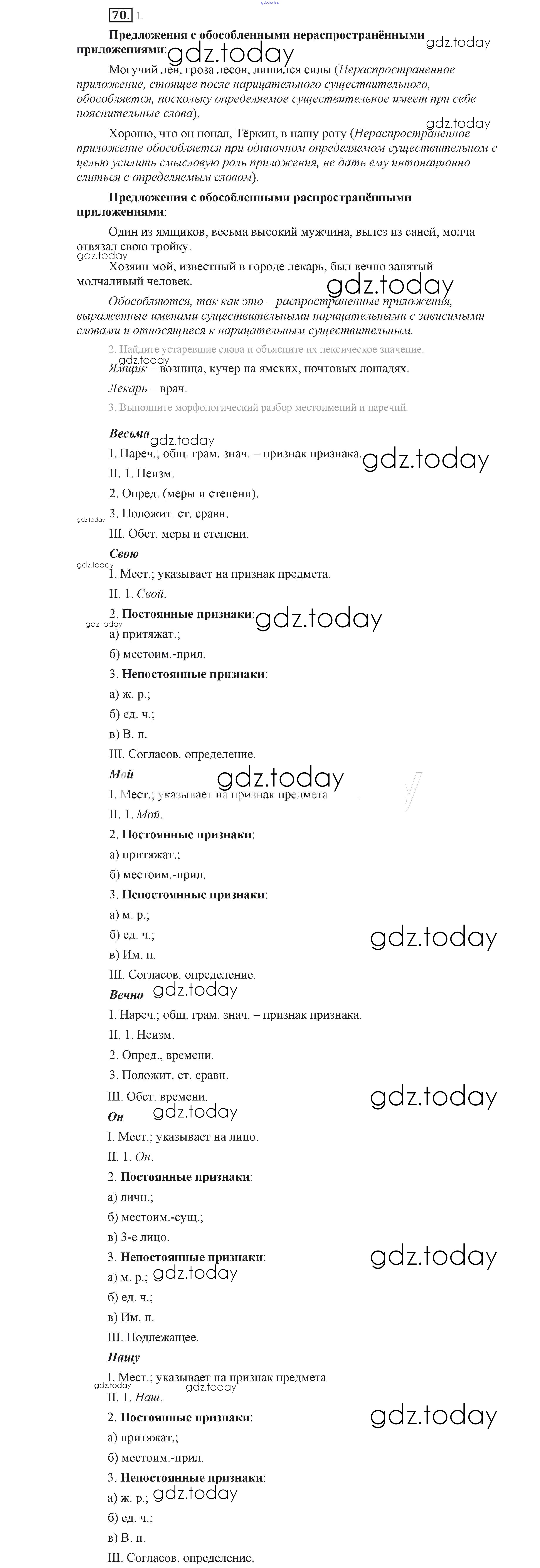На страницах сайта gdz.today вы найдете учебный и вспомогательный материал, направленный на улучшения знаний школьной программы. ГДЗ - онлайн мир знаний Решение к упражнениям 70 Учебнику по Русскому языку для 9 класса Львова, Львов Мнемозина 2016