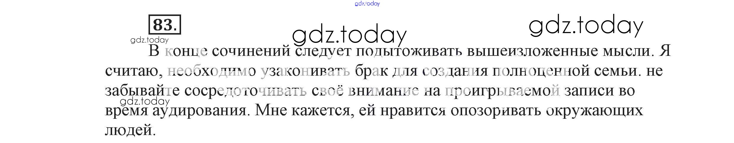 На страницах сайта gdz.today вы найдете учебный и вспомогательный материал, направленный на улучшения знаний школьной программы. ГДЗ - онлайн мир знаний Решение к упражнениям 83 Учебнику по Русскому языку для 9 класса Львова, Львов Мнемозина 2016