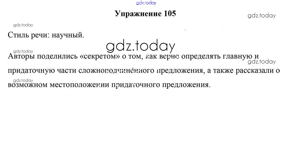 На страницах сайта gdz.today вы найдете учебный и вспомогательный материал, направленный на улучшения знаний школьной программы. ГДЗ - онлайн мир знаний Решение к упражнениям 105 Учебнику по Русскому языку для 9 класса Мурина, Литвинко Национальный институт образования 2011