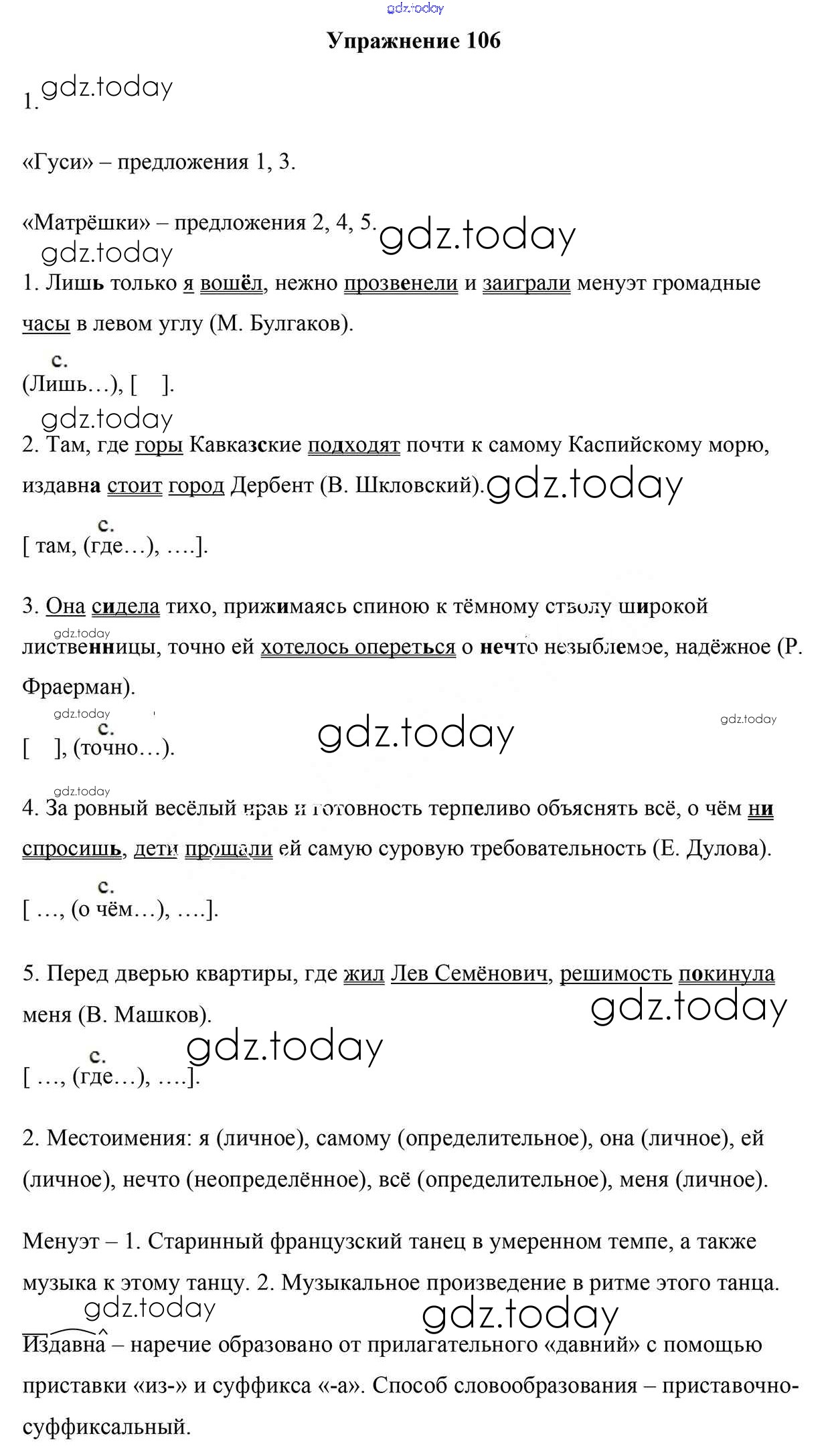 На страницах сайта gdz.today вы найдете учебный и вспомогательный материал, направленный на улучшения знаний школьной программы. ГДЗ - онлайн мир знаний Решение к упражнениям 106 Учебнику по Русскому языку для 9 класса Мурина, Литвинко Национальный институт образования 2011