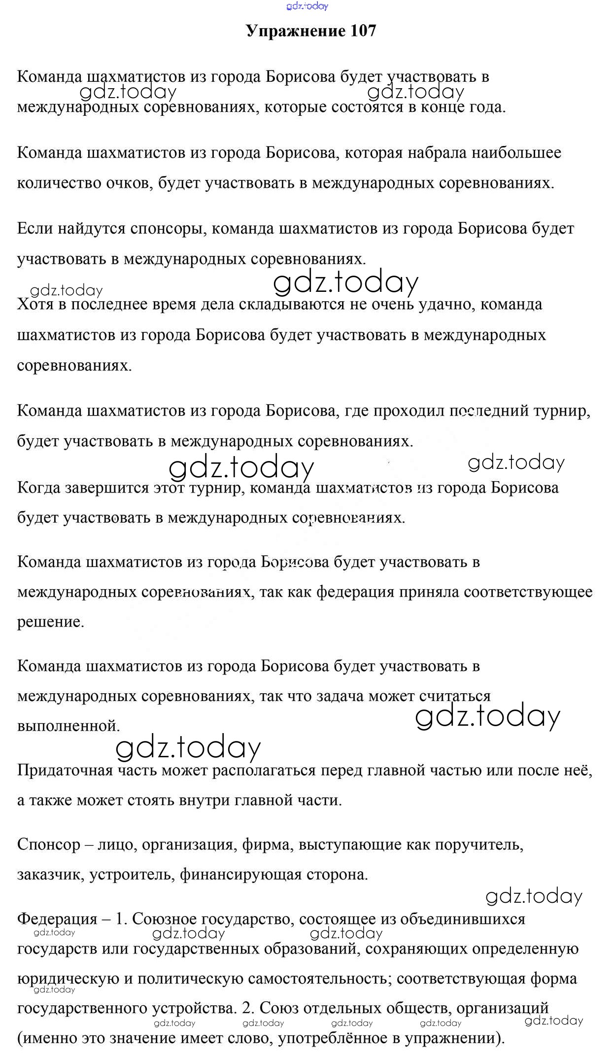 Ответы к Решение к упражнениям 107 Учебнику по Русскому языку для 9 класса Мурина, Литвинко Национальный институт образования 2011