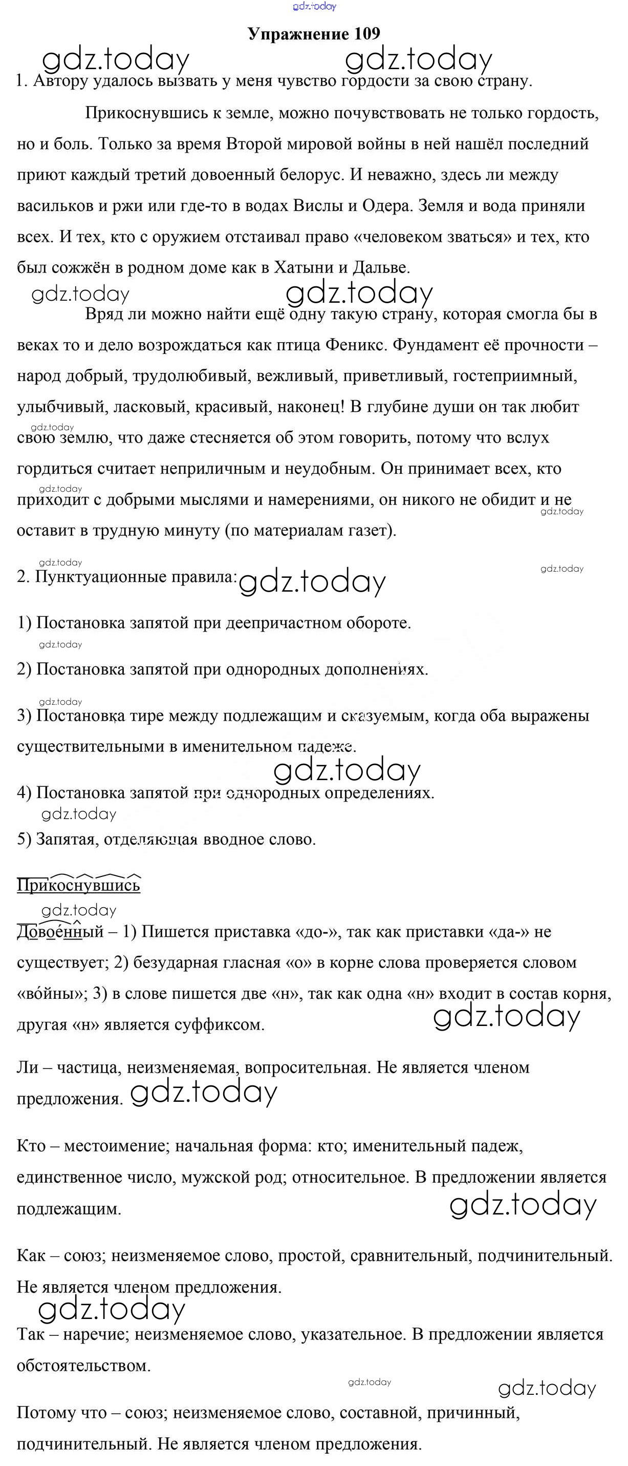 На страницах сайта gdz.today вы найдете учебный и вспомогательный материал, направленный на улучшения знаний школьной программы. ГДЗ - онлайн мир знаний Решение к упражнениям 109 Учебнику по Русскому языку для 9 класса Мурина, Литвинко Национальный институт образования 2011