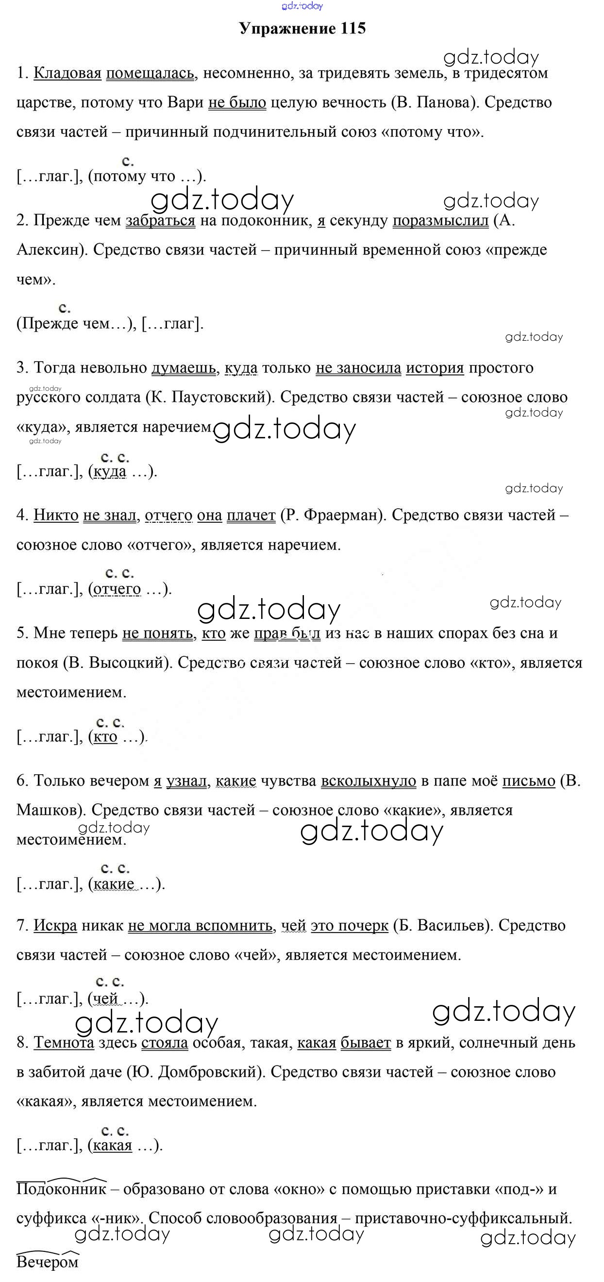 На страницах сайта gdz.today вы найдете учебный и вспомогательный материал, направленный на улучшения знаний школьной программы. ГДЗ - онлайн мир знаний Решение к упражнениям 115 Учебнику по Русскому языку для 9 класса Мурина, Литвинко Национальный институт образования 2011