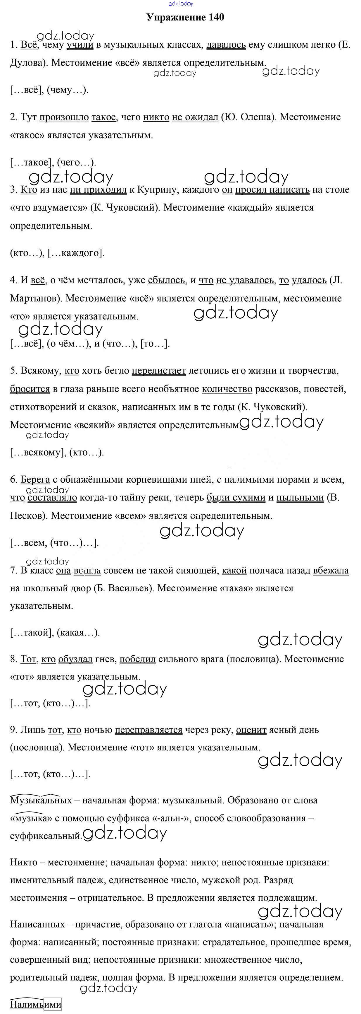 На страницах сайта gdz.today вы найдете учебный и вспомогательный материал, направленный на улучшения знаний школьной программы. ГДЗ - онлайн мир знаний Решение к упражнениям 140 Учебнику по Русскому языку для 9 класса Мурина, Литвинко Национальный институт образования 2011