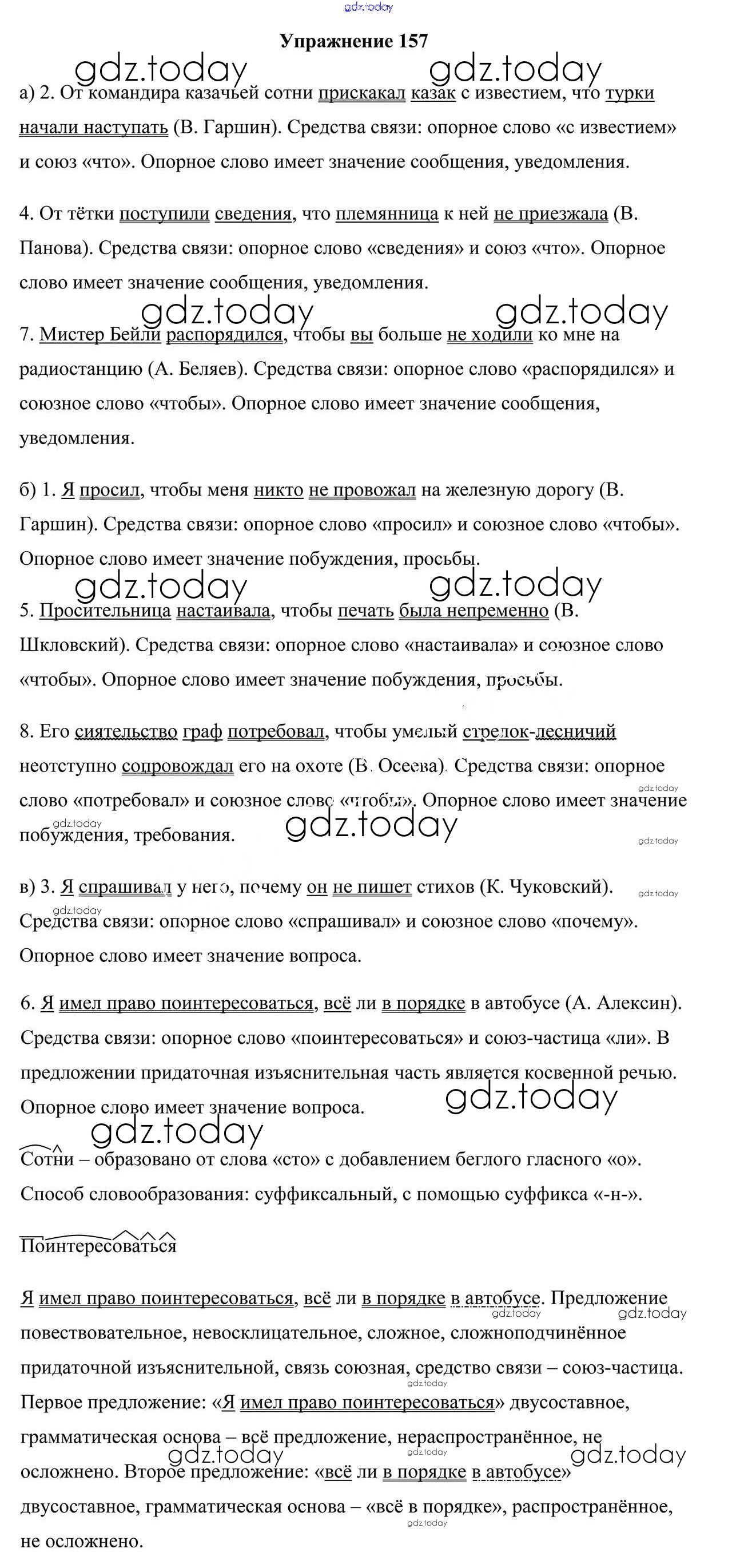 На страницах сайта gdz.today вы найдете учебный и вспомогательный материал, направленный на улучшения знаний школьной программы. ГДЗ - онлайн мир знаний Решение к упражнениям 157 Учебнику по Русскому языку для 9 класса Мурина, Литвинко Национальный институт образования 2011