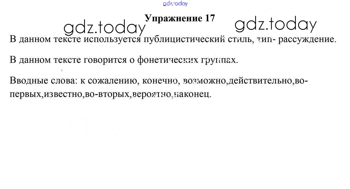На страницах сайта gdz.today вы найдете учебный и вспомогательный материал, направленный на улучшения знаний школьной программы. ГДЗ - онлайн мир знаний Решение к упражнениям 17 Учебнику по Русскому языку для 9 класса Мурина, Литвинко Национальный институт образования 2011