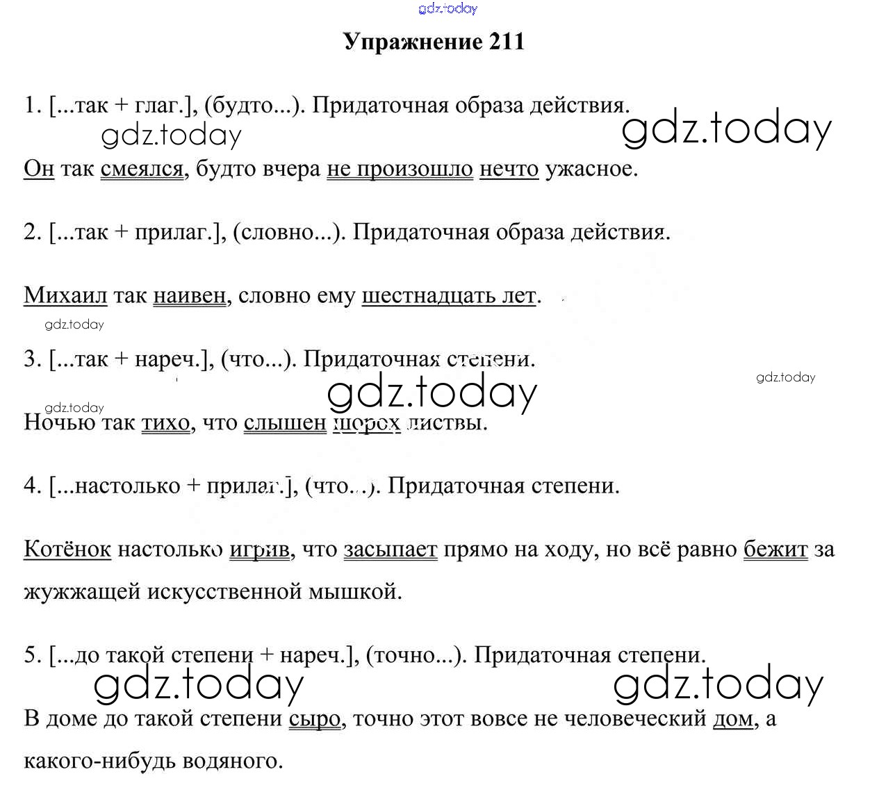 На страницах сайта gdz.today вы найдете учебный и вспомогательный материал, направленный на улучшения знаний школьной программы. ГДЗ - онлайн мир знаний Решение к упражнениям 211 Учебнику по Русскому языку для 9 класса Мурина, Литвинко Национальный институт образования 2011