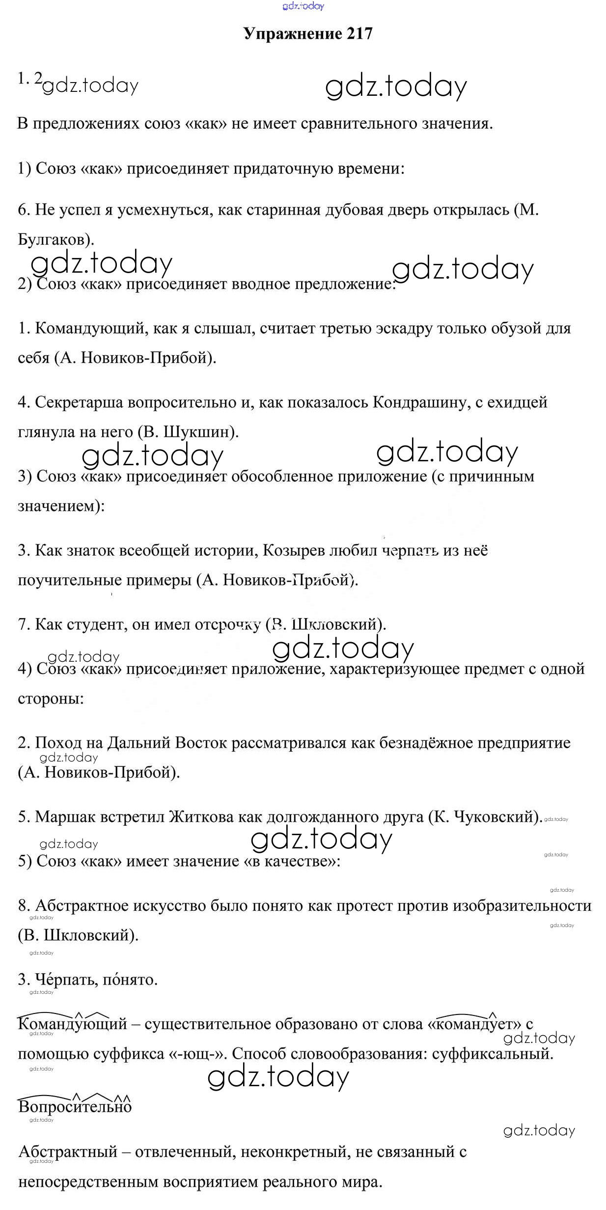 На страницах сайта gdz.today вы найдете учебный и вспомогательный материал, направленный на улучшения знаний школьной программы. ГДЗ - онлайн мир знаний Решение к упражнениям 217 Учебнику по Русскому языку для 9 класса Мурина, Литвинко Национальный институт образования 2011