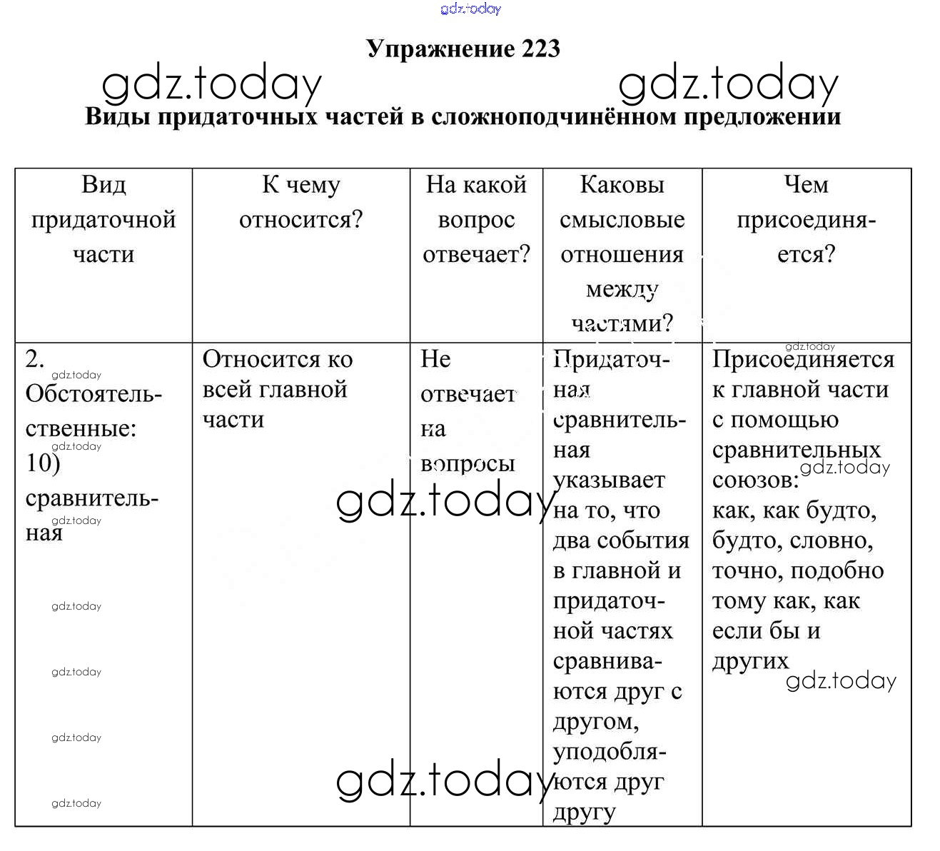 На страницах сайта gdz.today вы найдете учебный и вспомогательный материал, направленный на улучшения знаний школьной программы. ГДЗ - онлайн мир знаний Решение к упражнениям 223 Учебнику по Русскому языку для 9 класса Мурина, Литвинко Национальный институт образования 2011