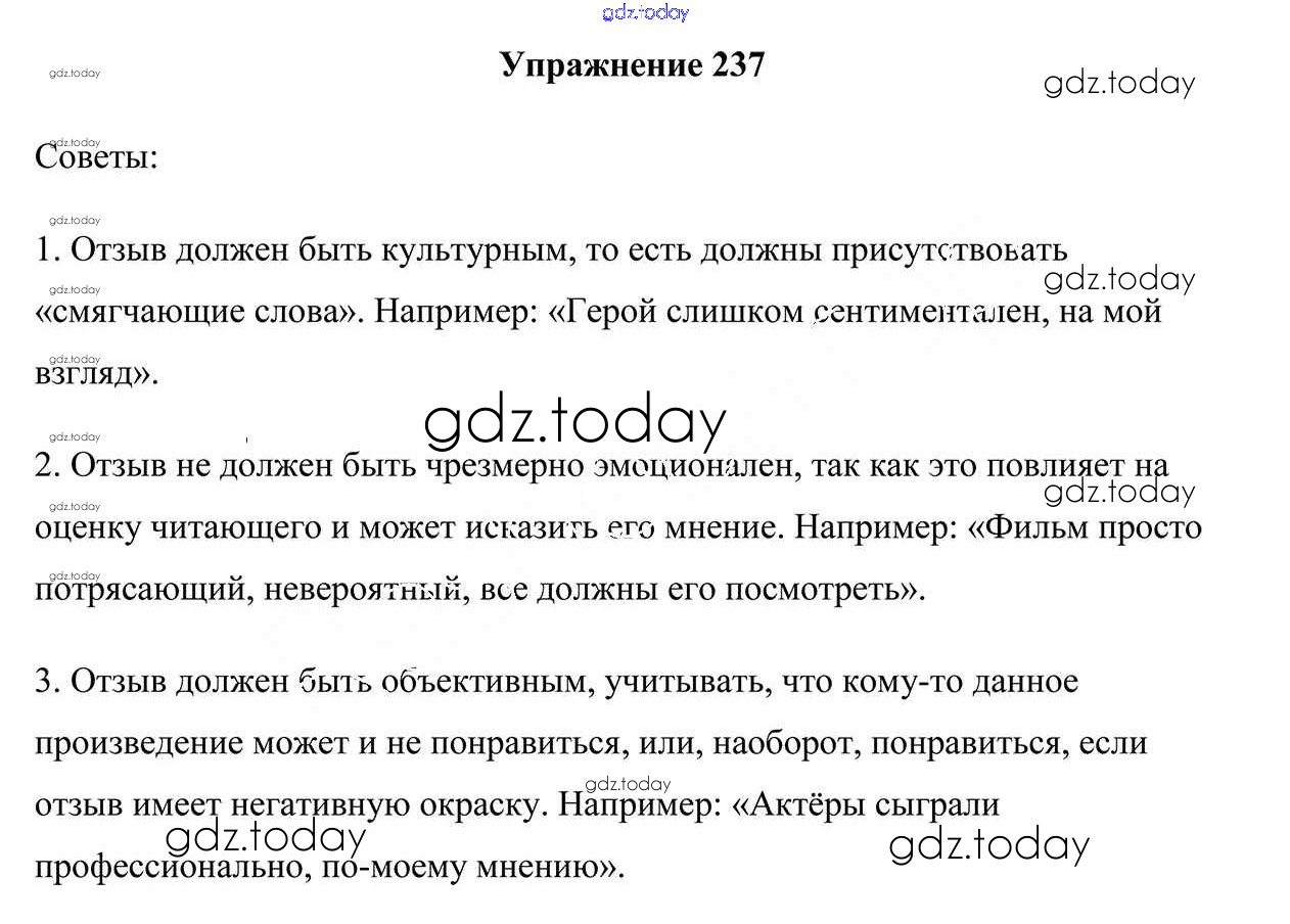 На страницах сайта gdz.today вы найдете учебный и вспомогательный материал, направленный на улучшения знаний школьной программы. ГДЗ - онлайн мир знаний Решение к упражнениям 237 Учебнику по Русскому языку для 9 класса Мурина, Литвинко Национальный институт образования 2011