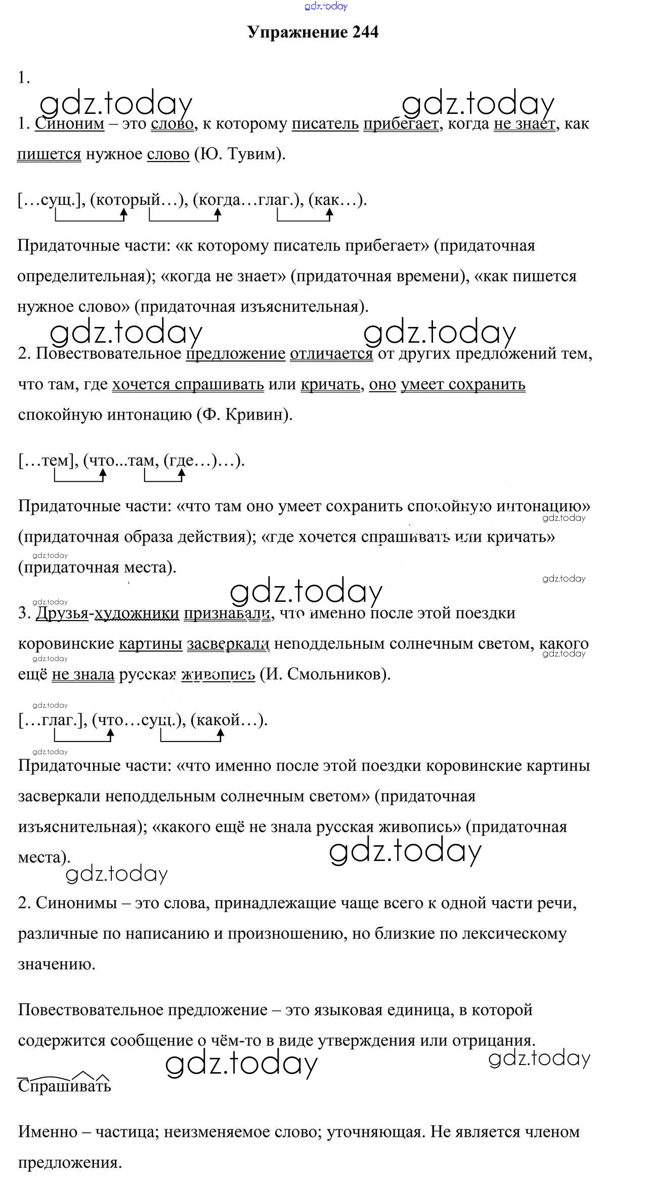 На страницах сайта gdz.today вы найдете учебный и вспомогательный материал, направленный на улучшения знаний школьной программы. ГДЗ - онлайн мир знаний Решение к упражнениям 244 Учебнику по Русскому языку для 9 класса Мурина, Литвинко Национальный институт образования 2011