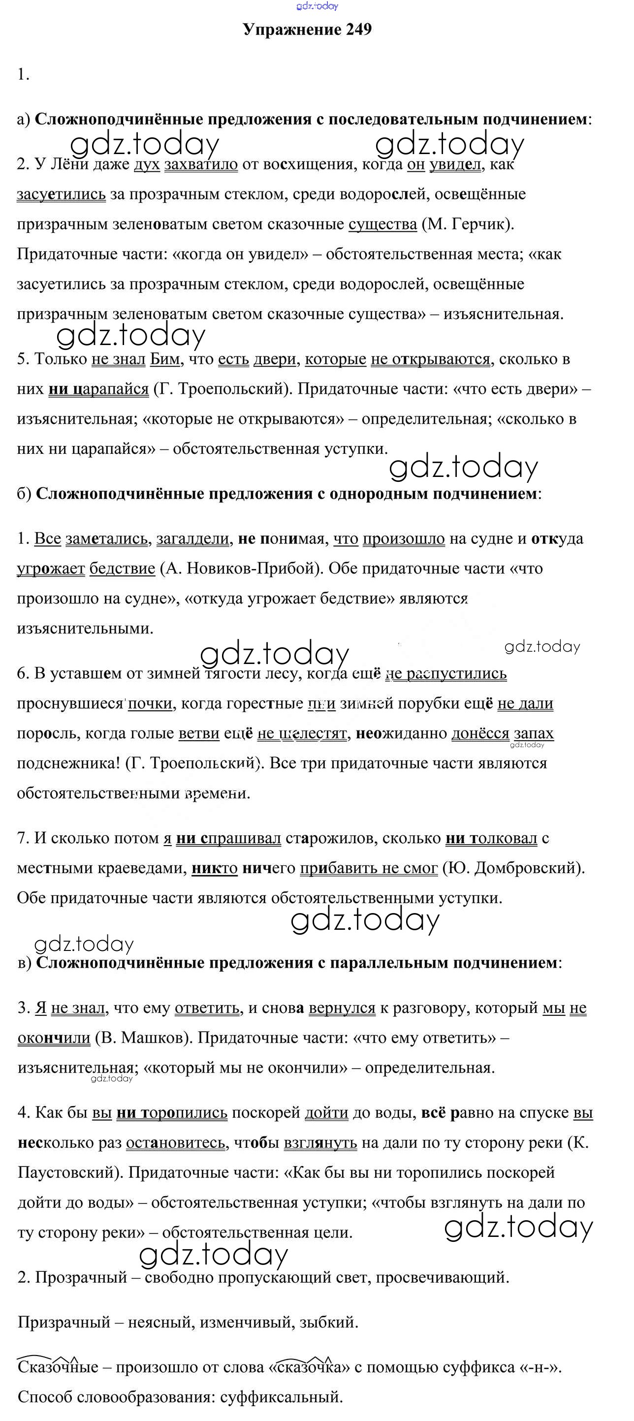 На страницах сайта gdz.today вы найдете учебный и вспомогательный материал, направленный на улучшения знаний школьной программы. ГДЗ - онлайн мир знаний Решение к упражнениям 249 Учебнику по Русскому языку для 9 класса Мурина, Литвинко Национальный институт образования 2011