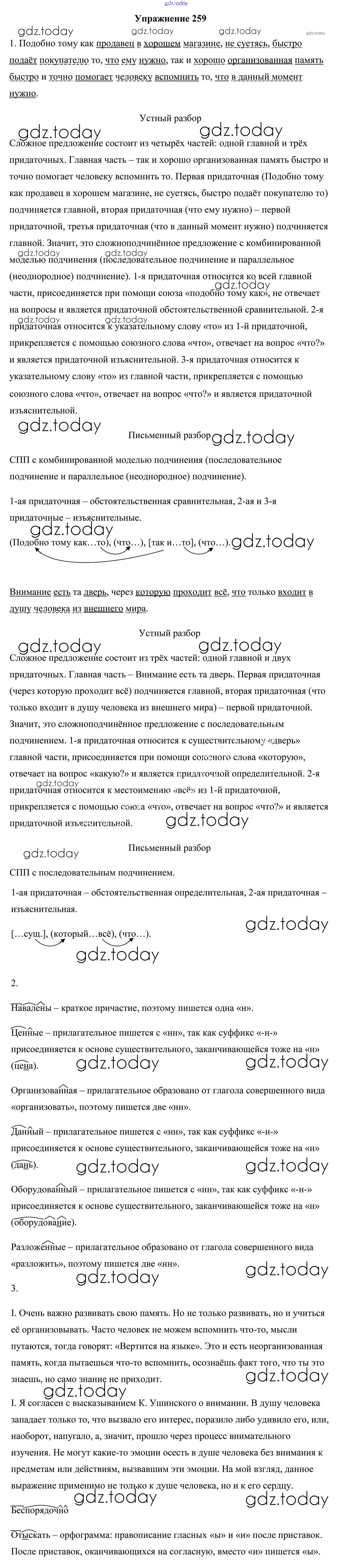 На страницах сайта gdz.today вы найдете учебный и вспомогательный материал, направленный на улучшения знаний школьной программы. ГДЗ - онлайн мир знаний Решение к упражнениям 259 Учебнику по Русскому языку для 9 класса Мурина, Литвинко Национальный институт образования 2011