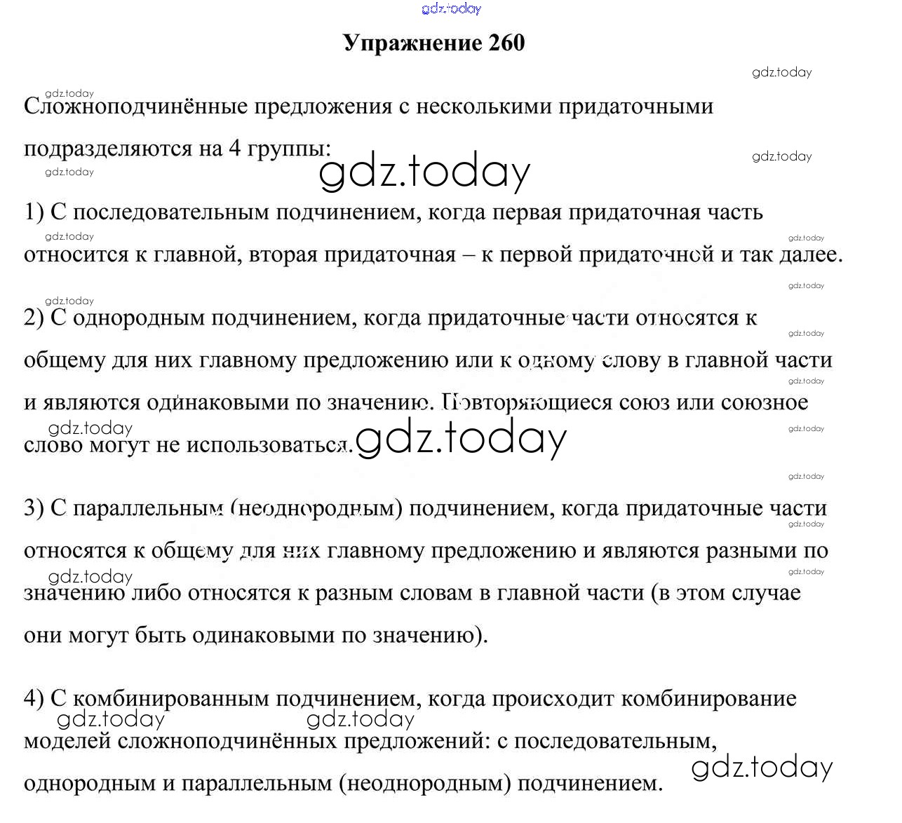 На страницах сайта gdz.today вы найдете учебный и вспомогательный материал, направленный на улучшения знаний школьной программы. ГДЗ - онлайн мир знаний Решение к упражнениям 260 Учебнику по Русскому языку для 9 класса Мурина, Литвинко Национальный институт образования 2011