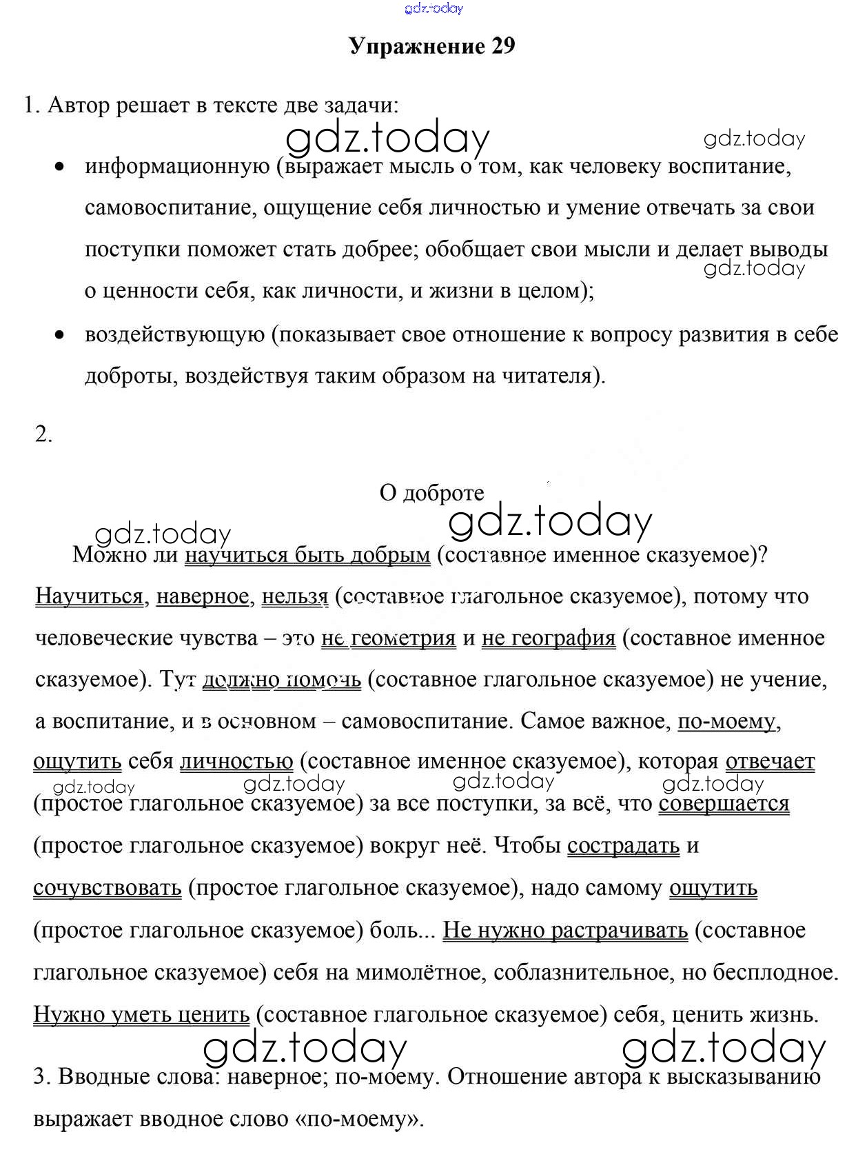 На страницах сайта gdz.today вы найдете учебный и вспомогательный материал, направленный на улучшения знаний школьной программы. ГДЗ - онлайн мир знаний Решение к упражнениям 29 Учебнику по Русскому языку для 9 класса Мурина, Литвинко Национальный институт образования 2011