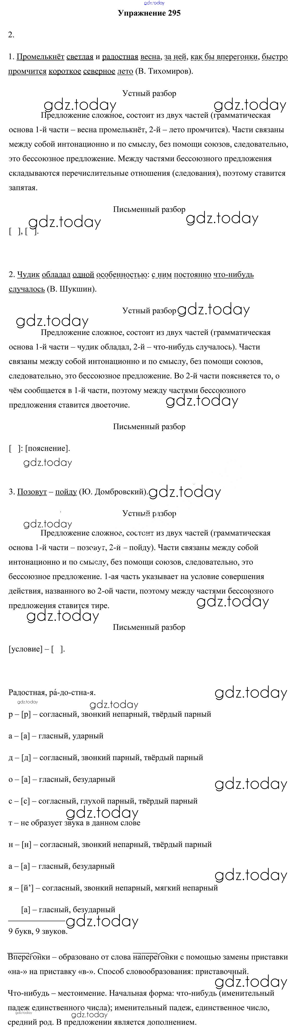 На страницах сайта gdz.today вы найдете учебный и вспомогательный материал, направленный на улучшения знаний школьной программы. ГДЗ - онлайн мир знаний Решение к упражнениям 295 Учебнику по Русскому языку для 9 класса Мурина, Литвинко Национальный институт образования 2011