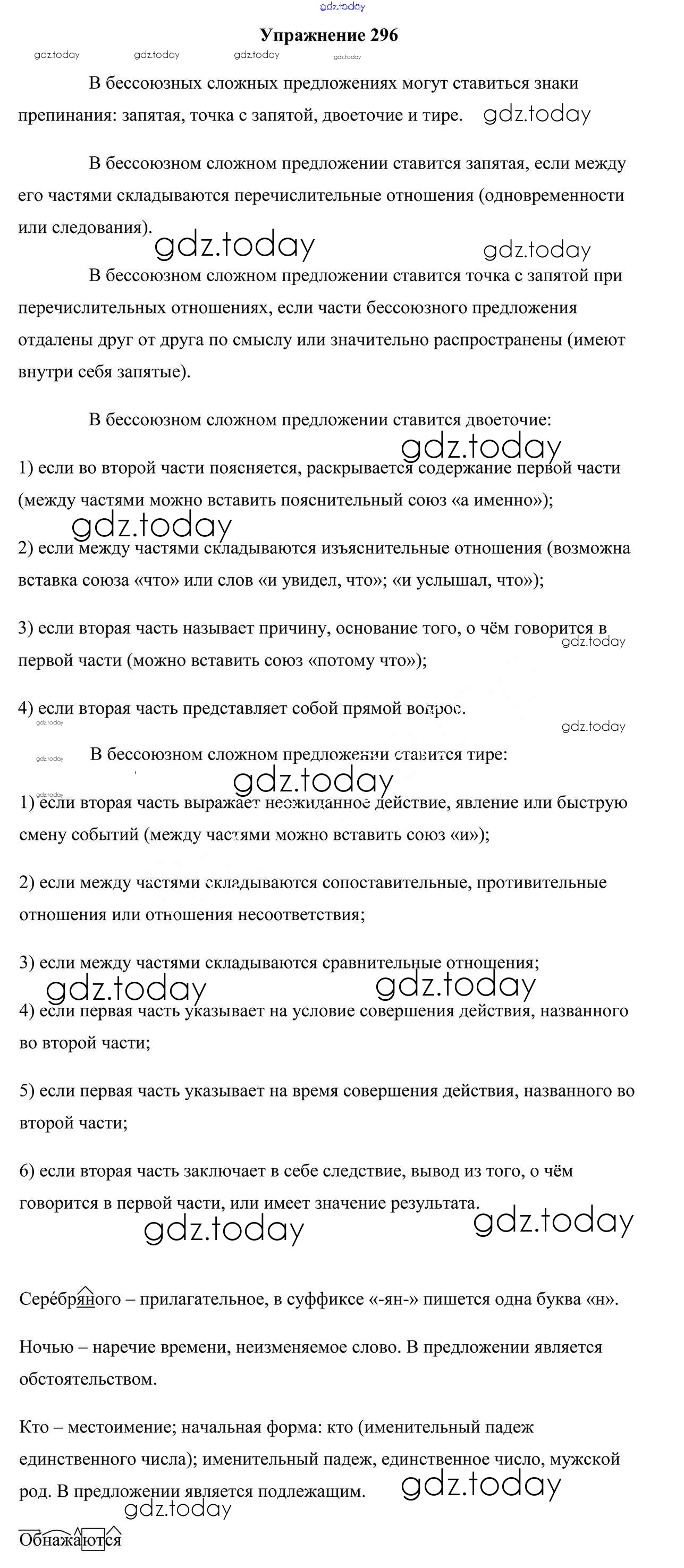 На страницах сайта gdz.today вы найдете учебный и вспомогательный материал, направленный на улучшения знаний школьной программы. ГДЗ - онлайн мир знаний Решение к упражнениям 296 Учебнику по Русскому языку для 9 класса Мурина, Литвинко Национальный институт образования 2011