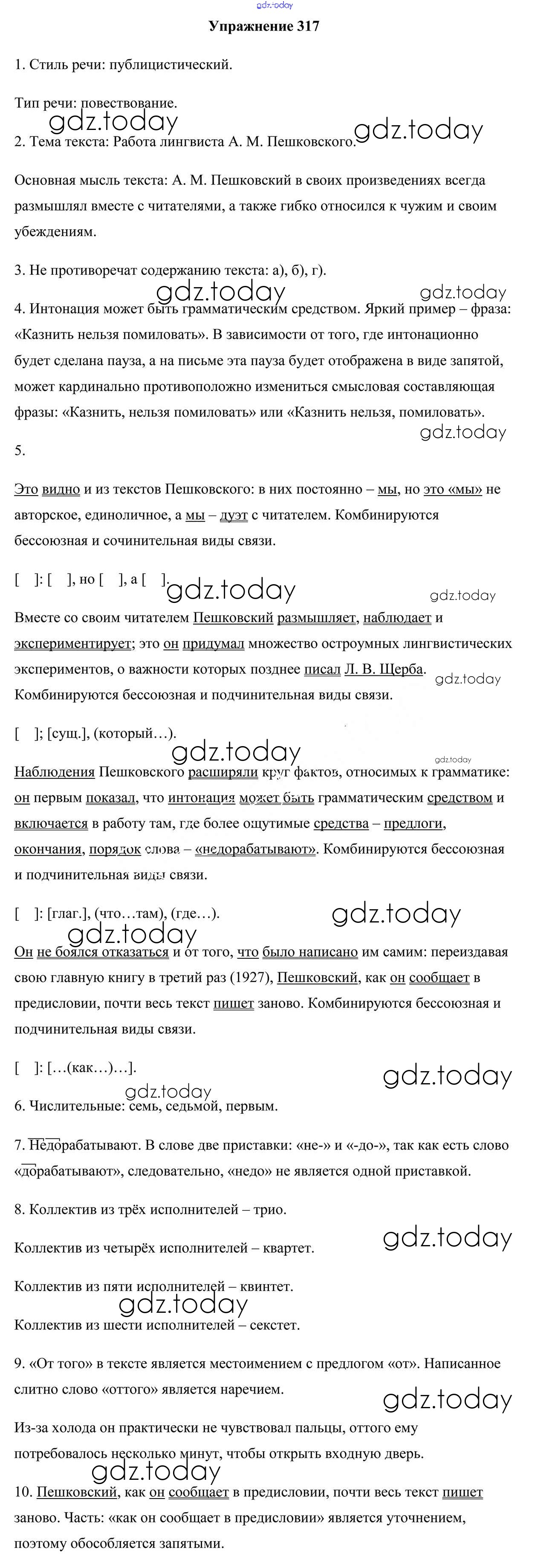 На страницах сайта gdz.today вы найдете учебный и вспомогательный материал, направленный на улучшения знаний школьной программы. ГДЗ - онлайн мир знаний Решение к упражнениям 317 Учебнику по Русскому языку для 9 класса Мурина, Литвинко Национальный институт образования 2011