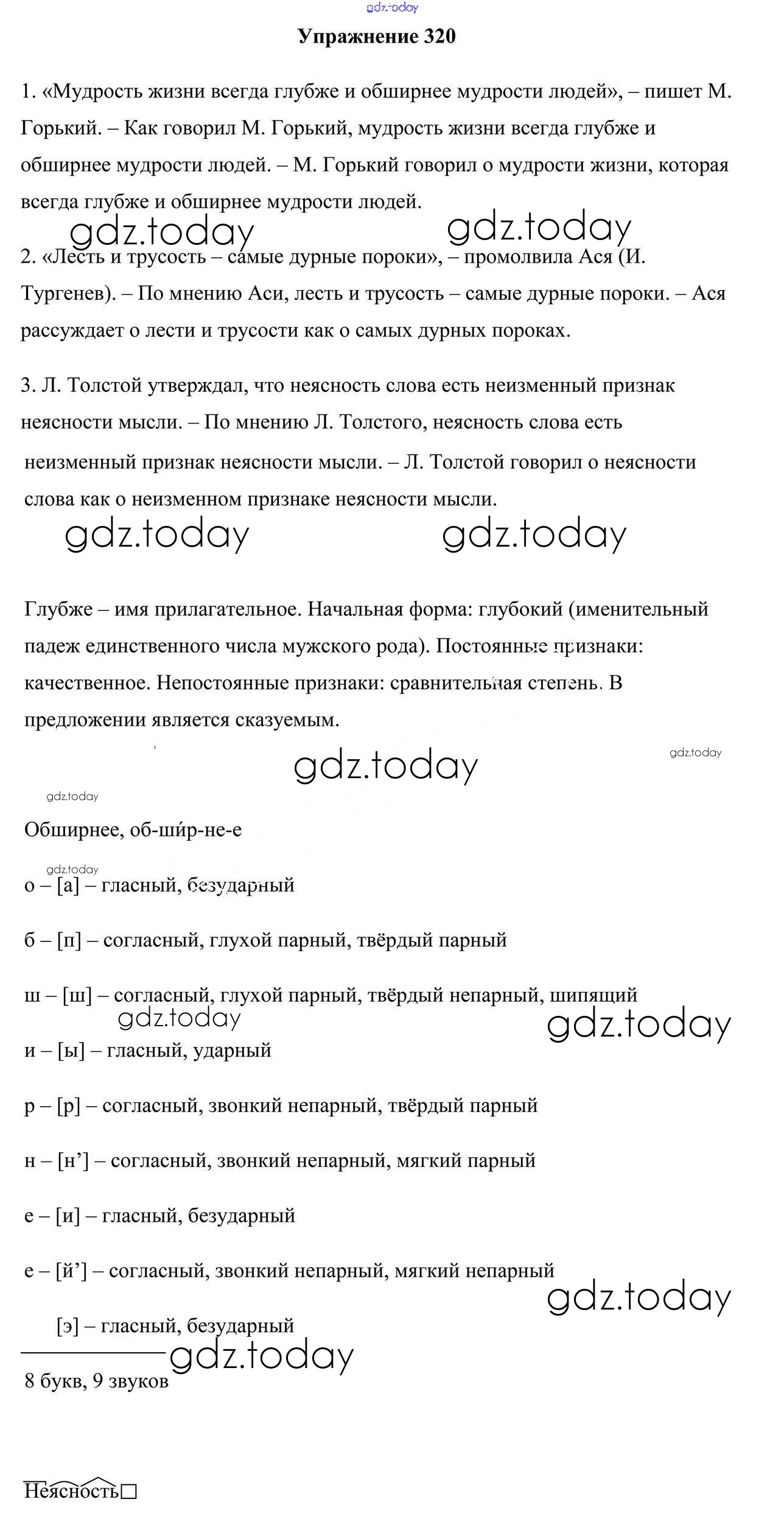 На страницах сайта gdz.today вы найдете учебный и вспомогательный материал, направленный на улучшения знаний школьной программы. ГДЗ - онлайн мир знаний Решение к упражнениям 320 Учебнику по Русскому языку для 9 класса Мурина, Литвинко Национальный институт образования 2011