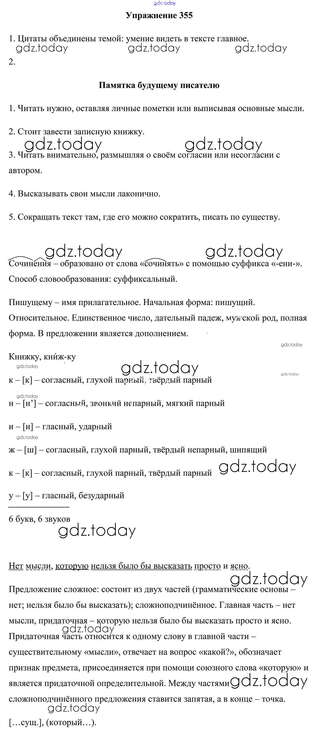 На страницах сайта gdz.today вы найдете учебный и вспомогательный материал, направленный на улучшения знаний школьной программы. ГДЗ - онлайн мир знаний Решение к упражнениям 355 Учебнику по Русскому языку для 9 класса Мурина, Литвинко Национальный институт образования 2011