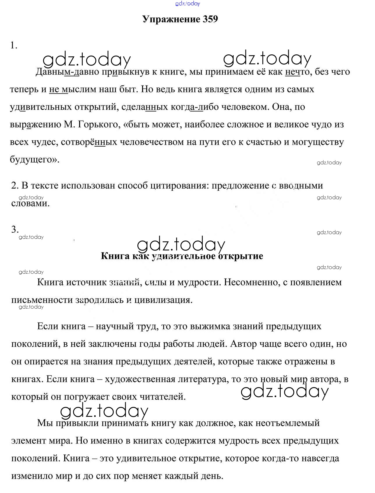 На страницах сайта gdz.today вы найдете учебный и вспомогательный материал, направленный на улучшения знаний школьной программы. ГДЗ - онлайн мир знаний Решение к упражнениям 359 Учебнику по Русскому языку для 9 класса Мурина, Литвинко Национальный институт образования 2011