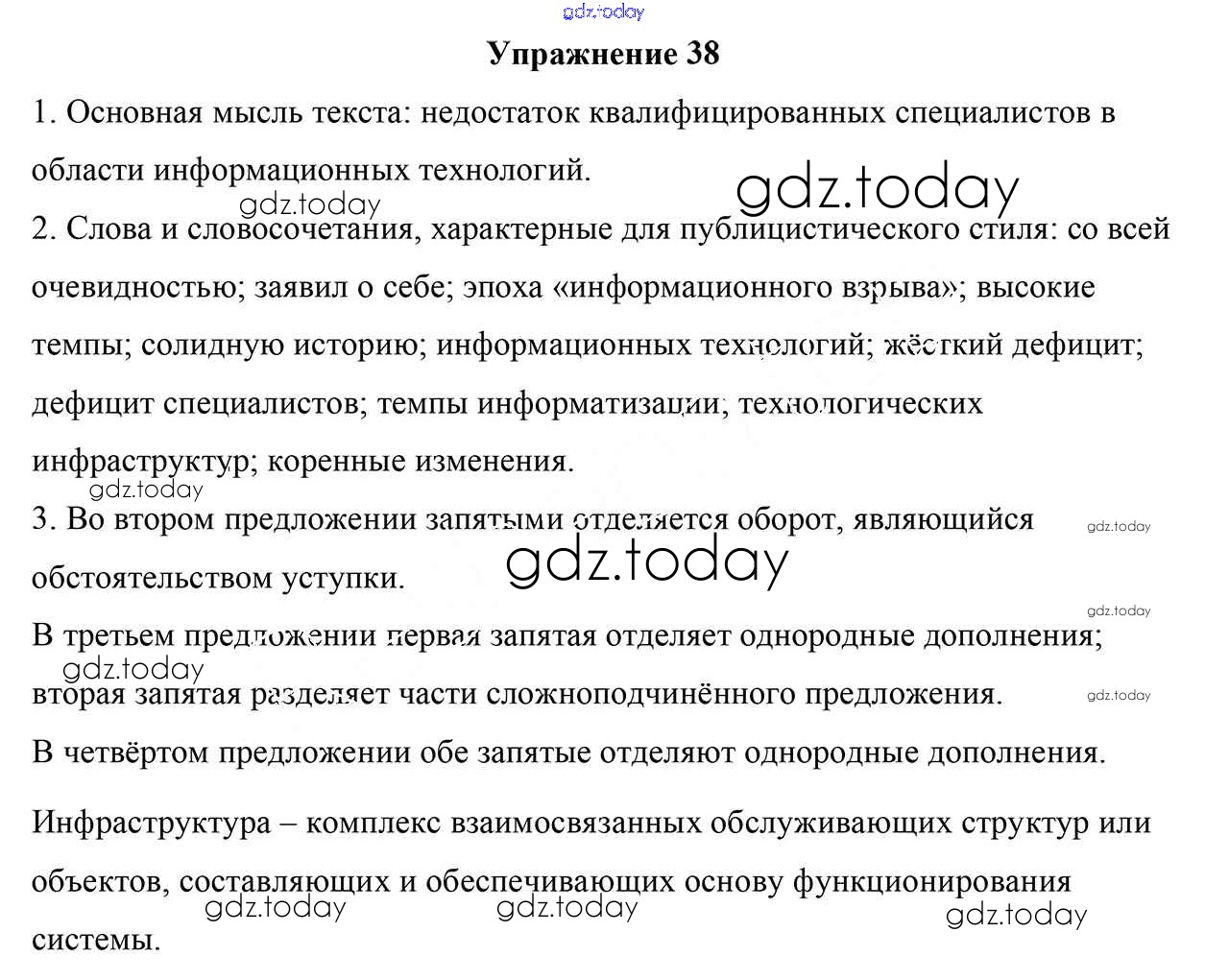 На страницах сайта gdz.today вы найдете учебный и вспомогательный материал, направленный на улучшения знаний школьной программы. ГДЗ - онлайн мир знаний Решение к упражнениям 38 Учебнику по Русскому языку для 9 класса Мурина, Литвинко Национальный институт образования 2011