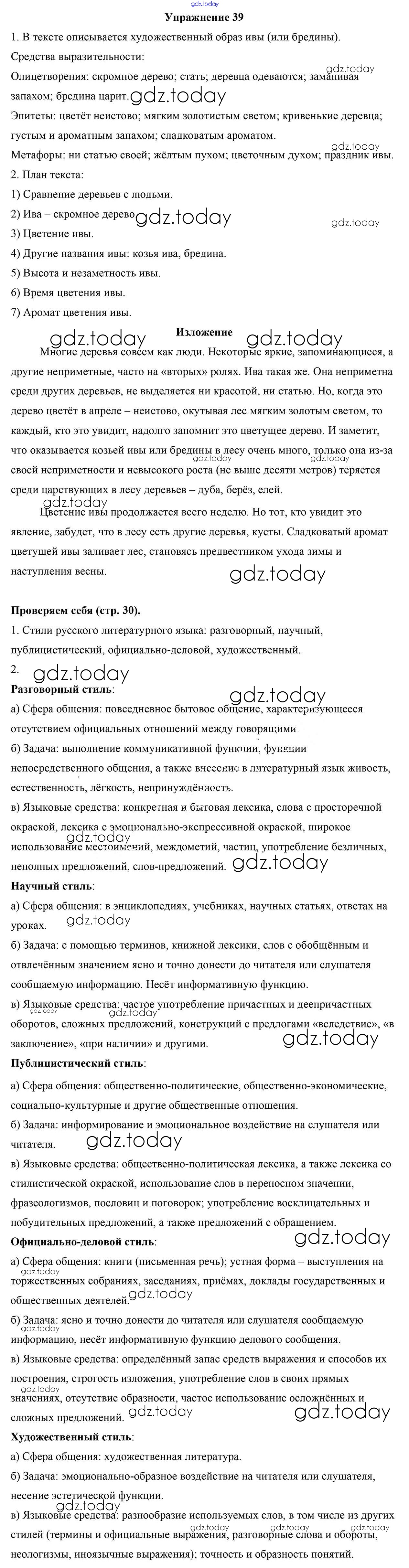 На страницах сайта gdz.today вы найдете учебный и вспомогательный материал, направленный на улучшения знаний школьной программы. ГДЗ - онлайн мир знаний Решение к упражнениям 39 Учебнику по Русскому языку для 9 класса Мурина, Литвинко Национальный институт образования 2011