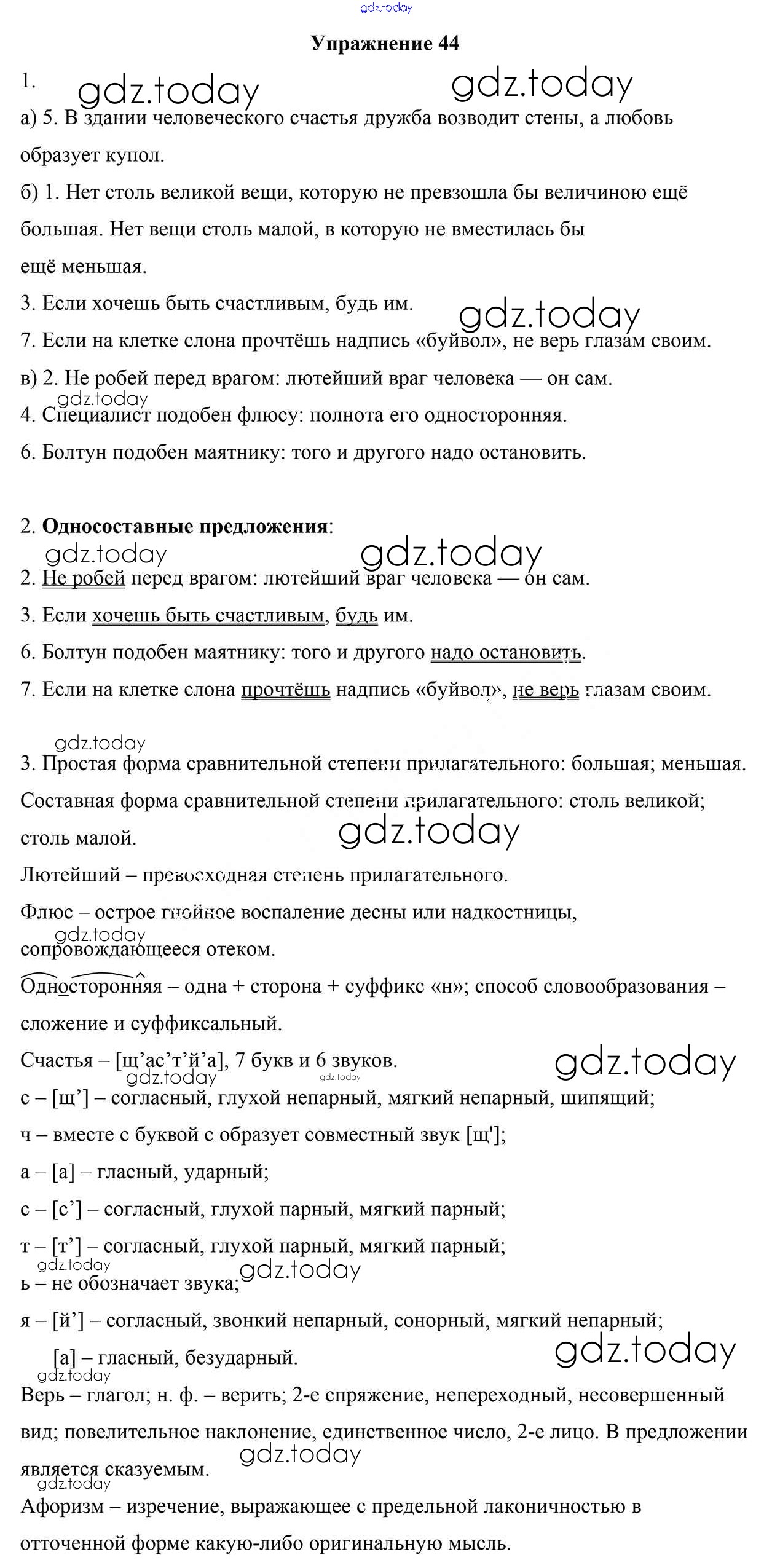Ответы к Решение к упражнениям 44 Учебнику по Русскому языку для 9 класса Мурина, Литвинко Национальный институт образования 2011