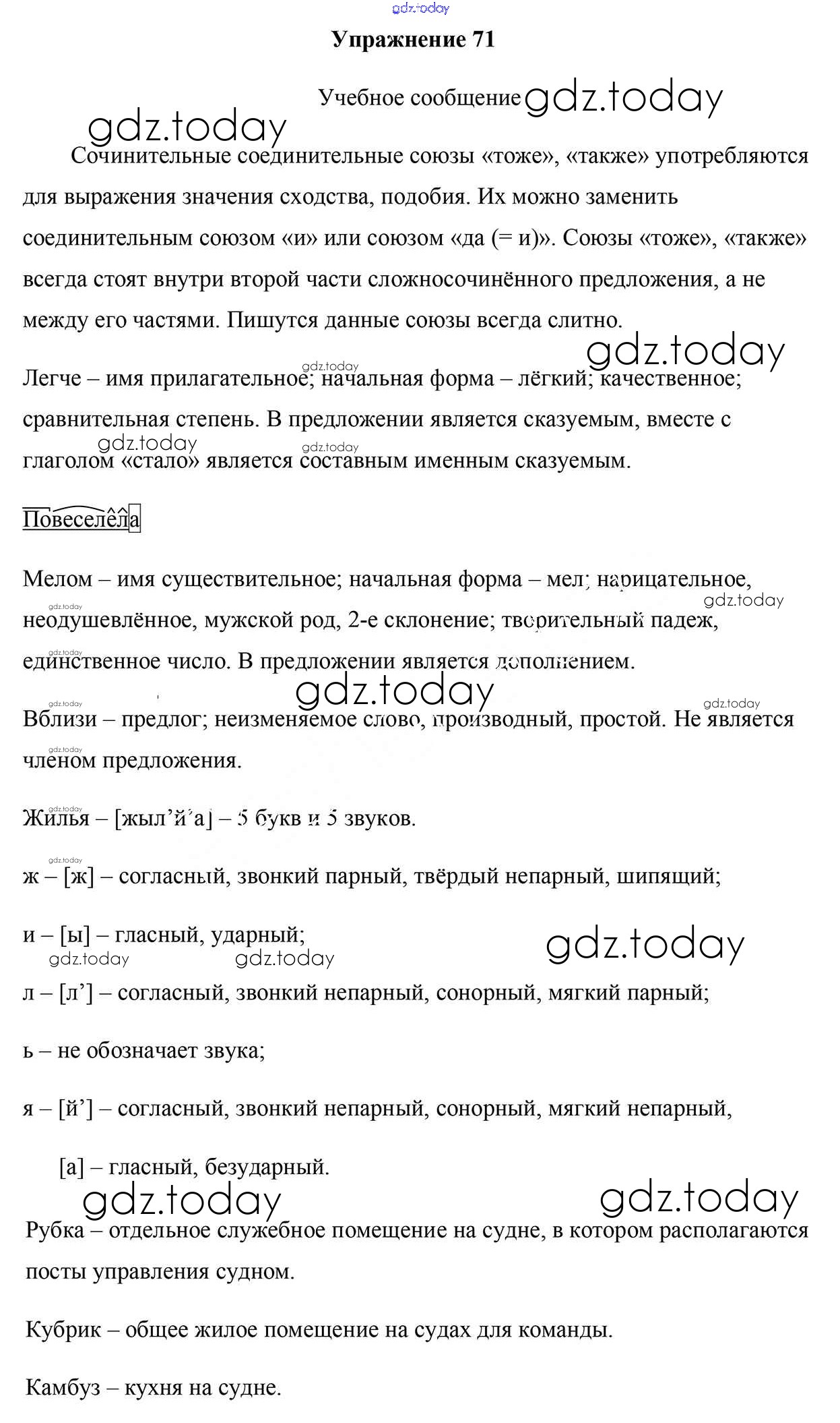 На страницах сайта gdz.today вы найдете учебный и вспомогательный материал, направленный на улучшения знаний школьной программы. ГДЗ - онлайн мир знаний Решение к упражнениям 71 Учебнику по Русскому языку для 9 класса Мурина, Литвинко Национальный институт образования 2011