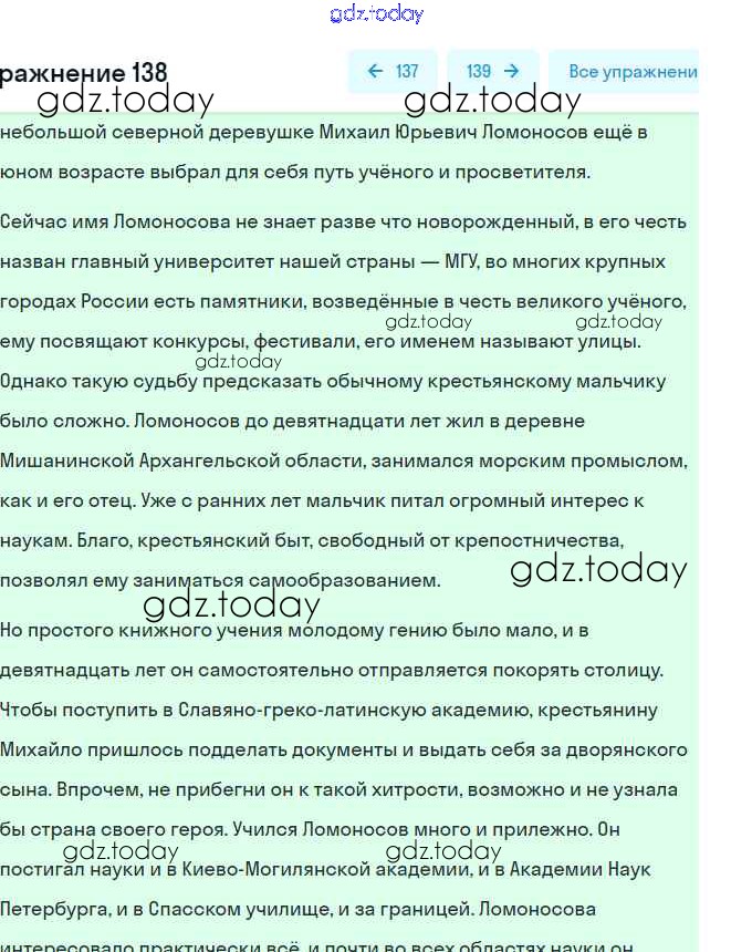 На страницах сайта gdz.today вы найдете учебный и вспомогательный материал, направленный на улучшения знаний школьной программы. ГДЗ - онлайн мир знаний Решение. Упражнения 138 Практике по Русскому языку для 9 класса Пичугов, Еремеева Просвещение, Дрофа 2022, 2012