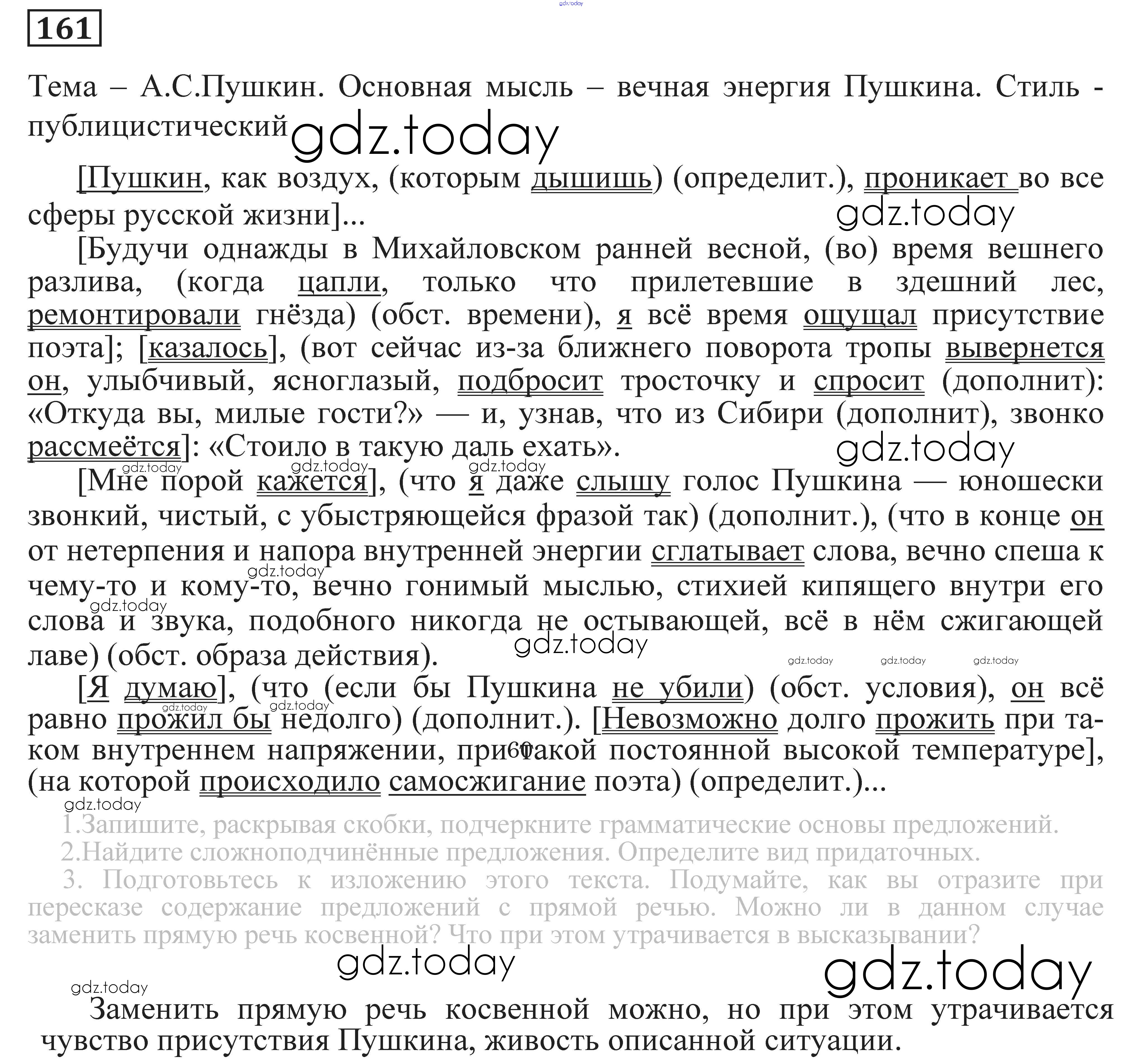 На страницах сайта gdz.today вы найдете учебный и вспомогательный материал, направленный на улучшения знаний школьной программы. ГДЗ - онлайн мир знаний Решение. Упражнения 161 Практике по Русскому языку для 9 класса Пичугов, Еремеева Просвещение, Дрофа 2022, 2012