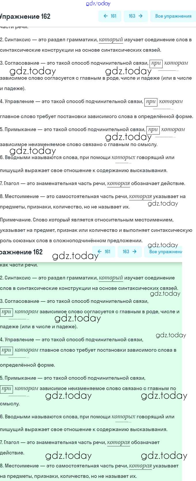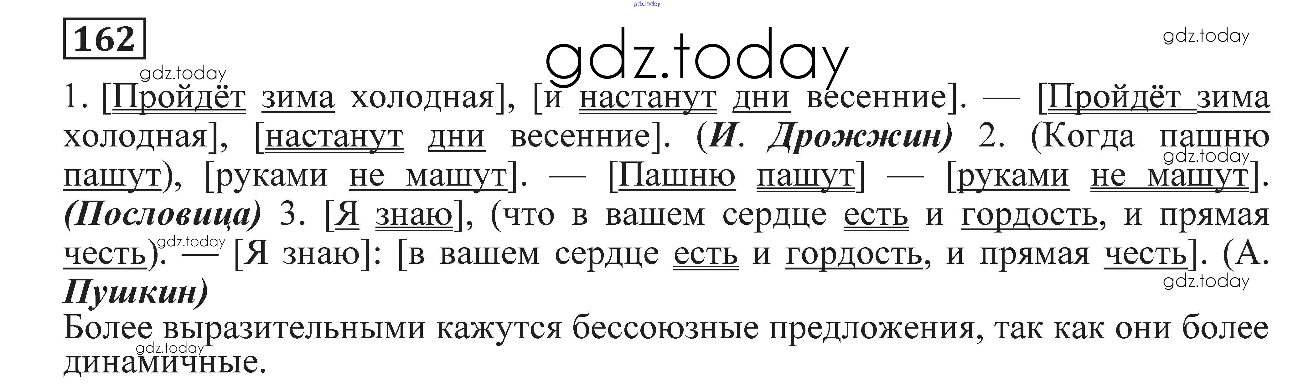 На страницах сайта gdz.today вы найдете учебный и вспомогательный материал, направленный на улучшения знаний школьной программы. ГДЗ - онлайн мир знаний Решение. Упражнения 162 Практике по Русскому языку для 9 класса Пичугов, Еремеева Просвещение, Дрофа 2022, 2012