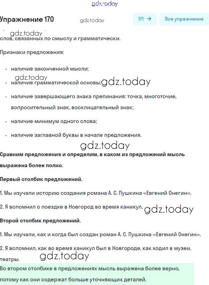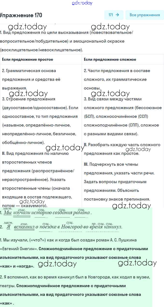 На страницах сайта gdz.today вы найдете учебный и вспомогательный материал, направленный на улучшения знаний школьной программы. ГДЗ - онлайн мир знаний Решение. Упражнения 170 Практике по Русскому языку для 9 класса Пичугов, Еремеева Просвещение, Дрофа 2022, 2012