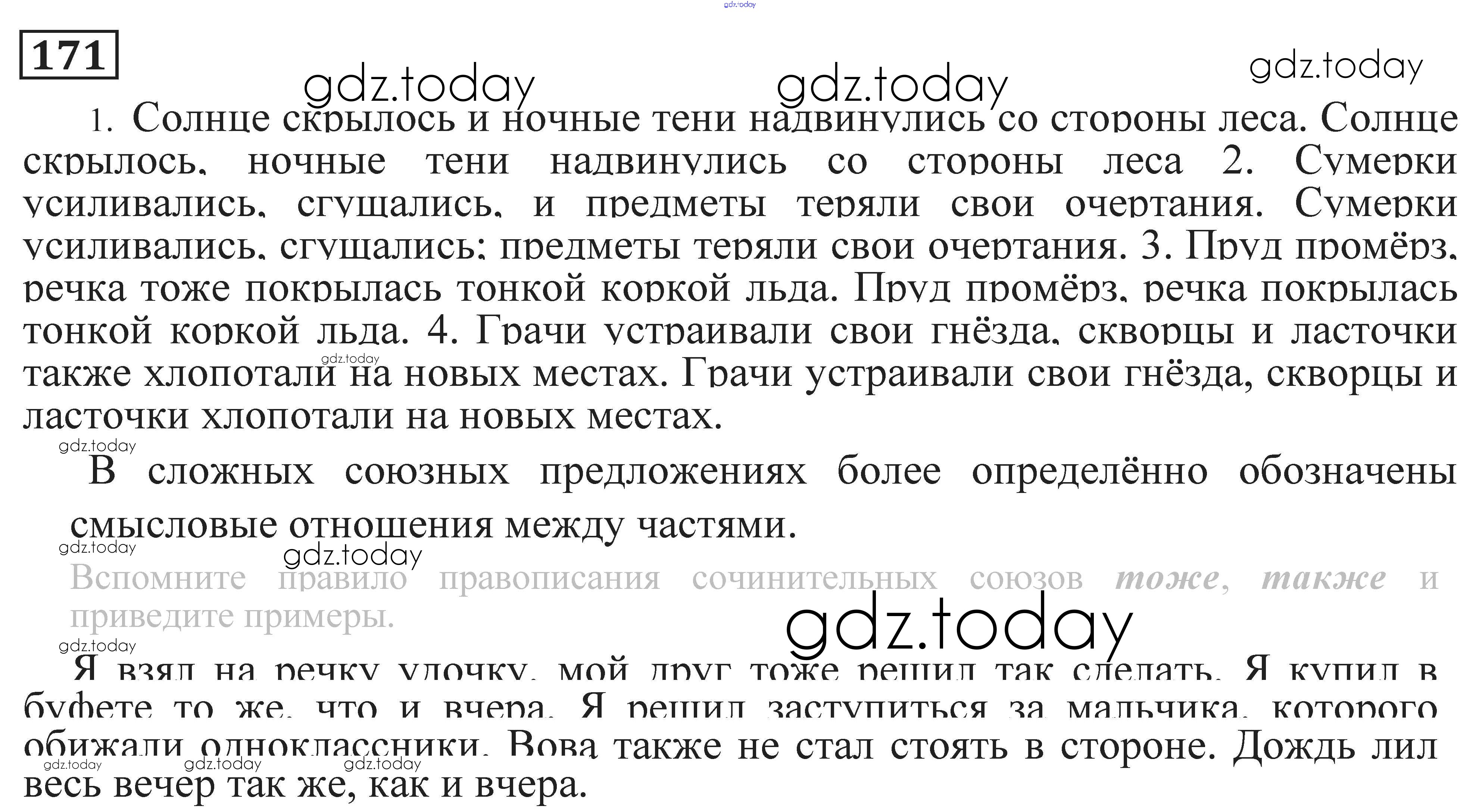 На страницах сайта gdz.today вы найдете учебный и вспомогательный материал, направленный на улучшения знаний школьной программы. ГДЗ - онлайн мир знаний Решение. Упражнения 171 Практике по Русскому языку для 9 класса Пичугов, Еремеева Просвещение, Дрофа 2022, 2012