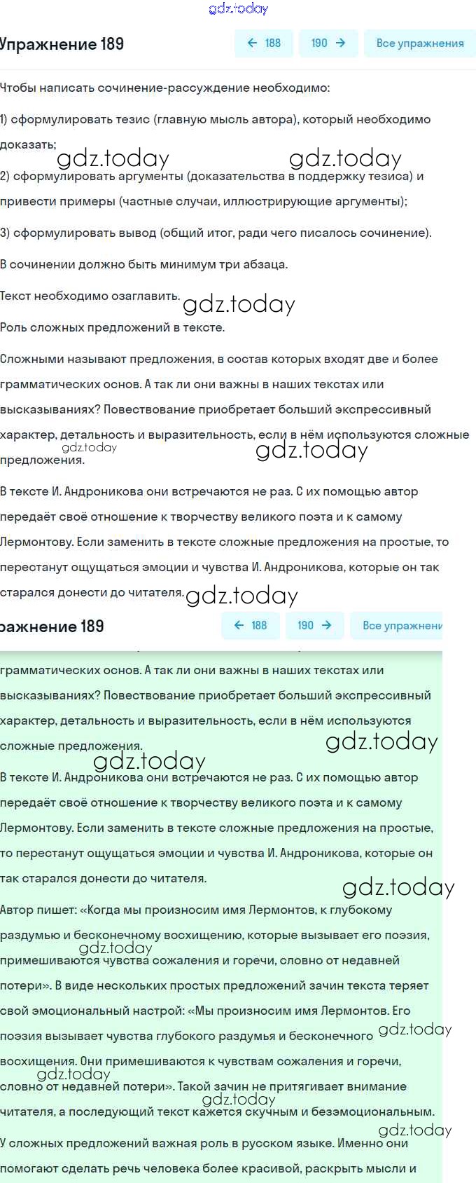 На страницах сайта gdz.today вы найдете учебный и вспомогательный материал, направленный на улучшения знаний школьной программы. ГДЗ - онлайн мир знаний Решение. Упражнения 189 Практике по Русскому языку для 9 класса Пичугов, Еремеева Просвещение, Дрофа 2022, 2012