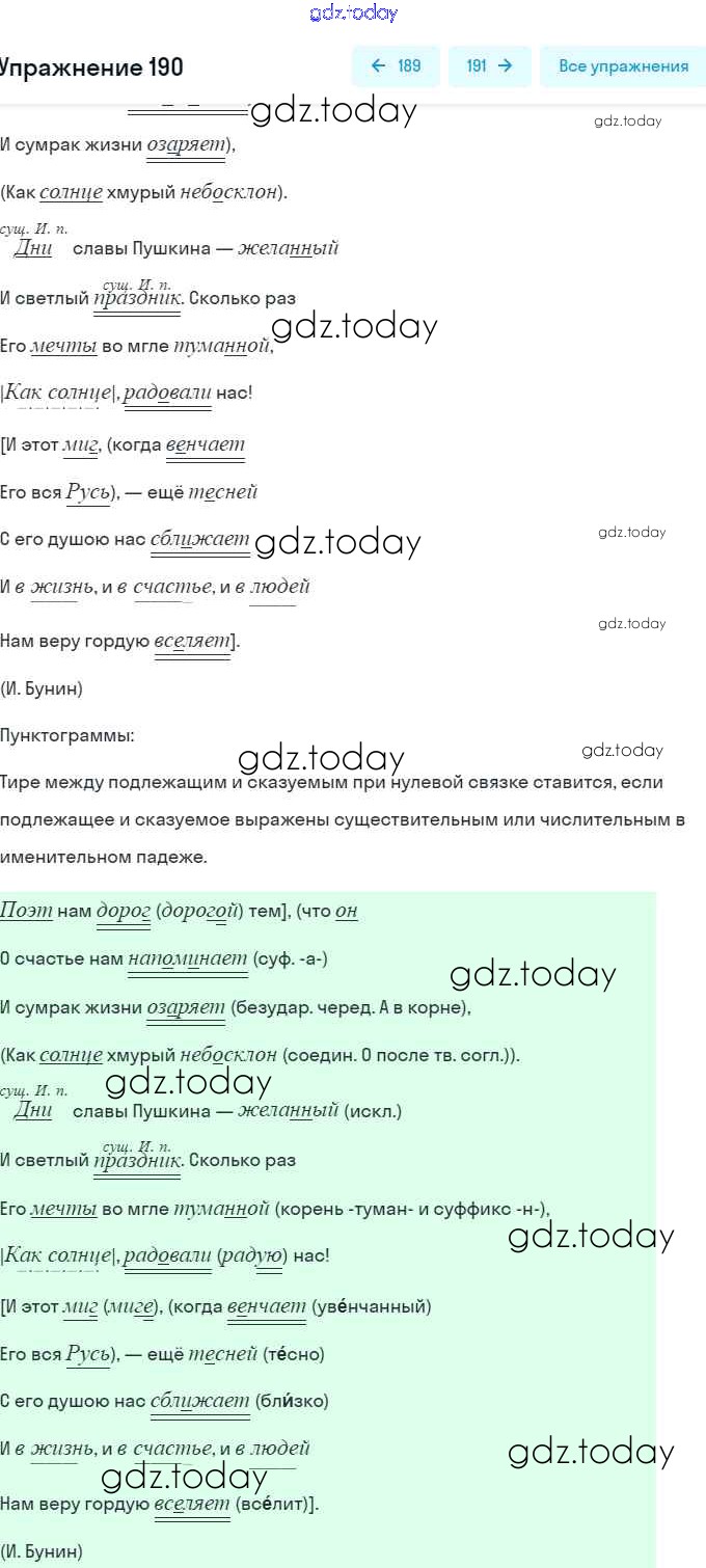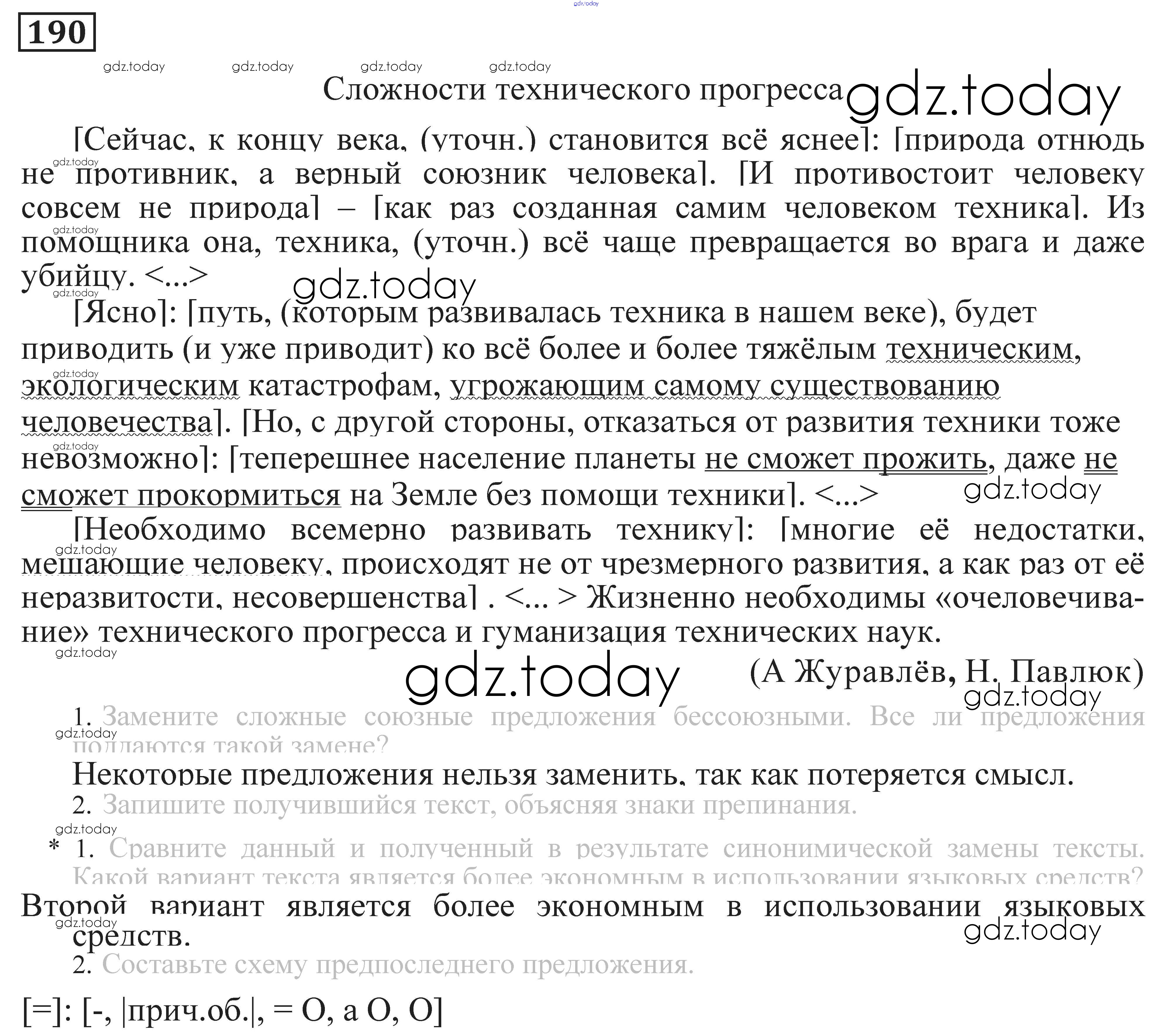 На страницах сайта gdz.today вы найдете учебный и вспомогательный материал, направленный на улучшения знаний школьной программы. ГДЗ - онлайн мир знаний Решение. Упражнения 190 Практике по Русскому языку для 9 класса Пичугов, Еремеева Просвещение, Дрофа 2022, 2012