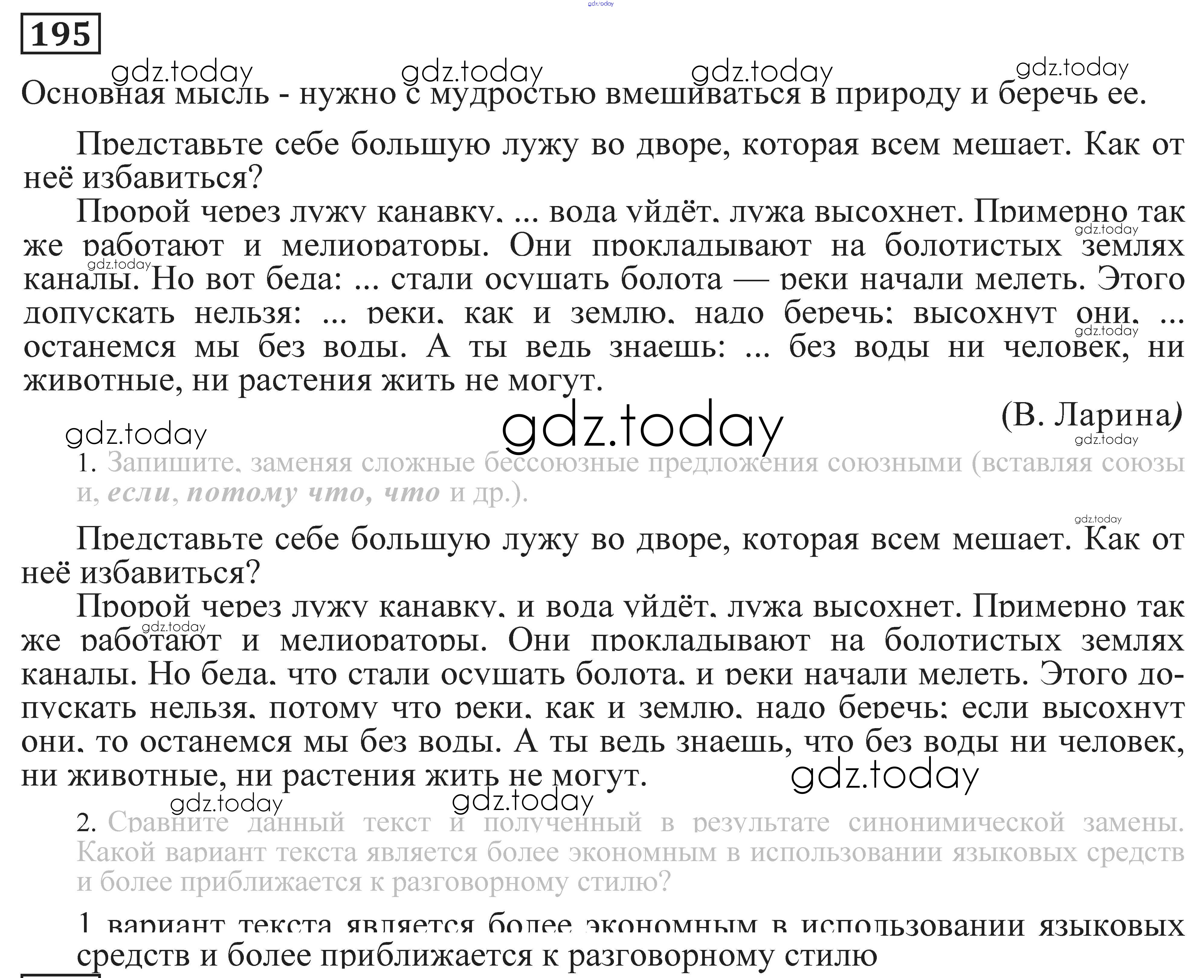 На страницах сайта gdz.today вы найдете учебный и вспомогательный материал, направленный на улучшения знаний школьной программы. ГДЗ - онлайн мир знаний Решение. Упражнения 195 Практике по Русскому языку для 9 класса Пичугов, Еремеева Просвещение, Дрофа 2022, 2012