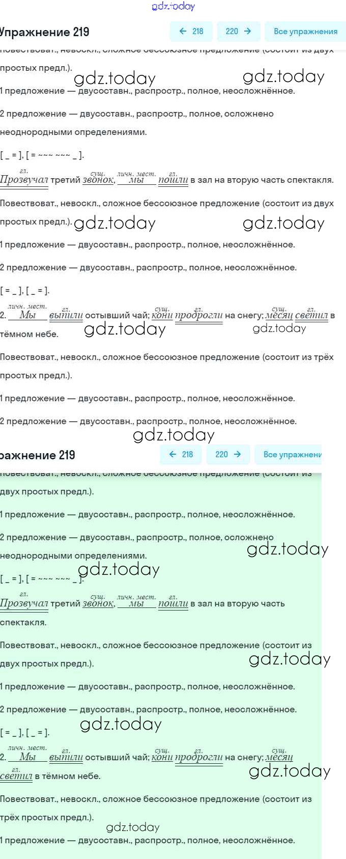 На страницах сайта gdz.today вы найдете учебный и вспомогательный материал, направленный на улучшения знаний школьной программы. ГДЗ - онлайн мир знаний Решение. Упражнения 219 Практике по Русскому языку для 9 класса Пичугов, Еремеева Просвещение, Дрофа 2022, 2012