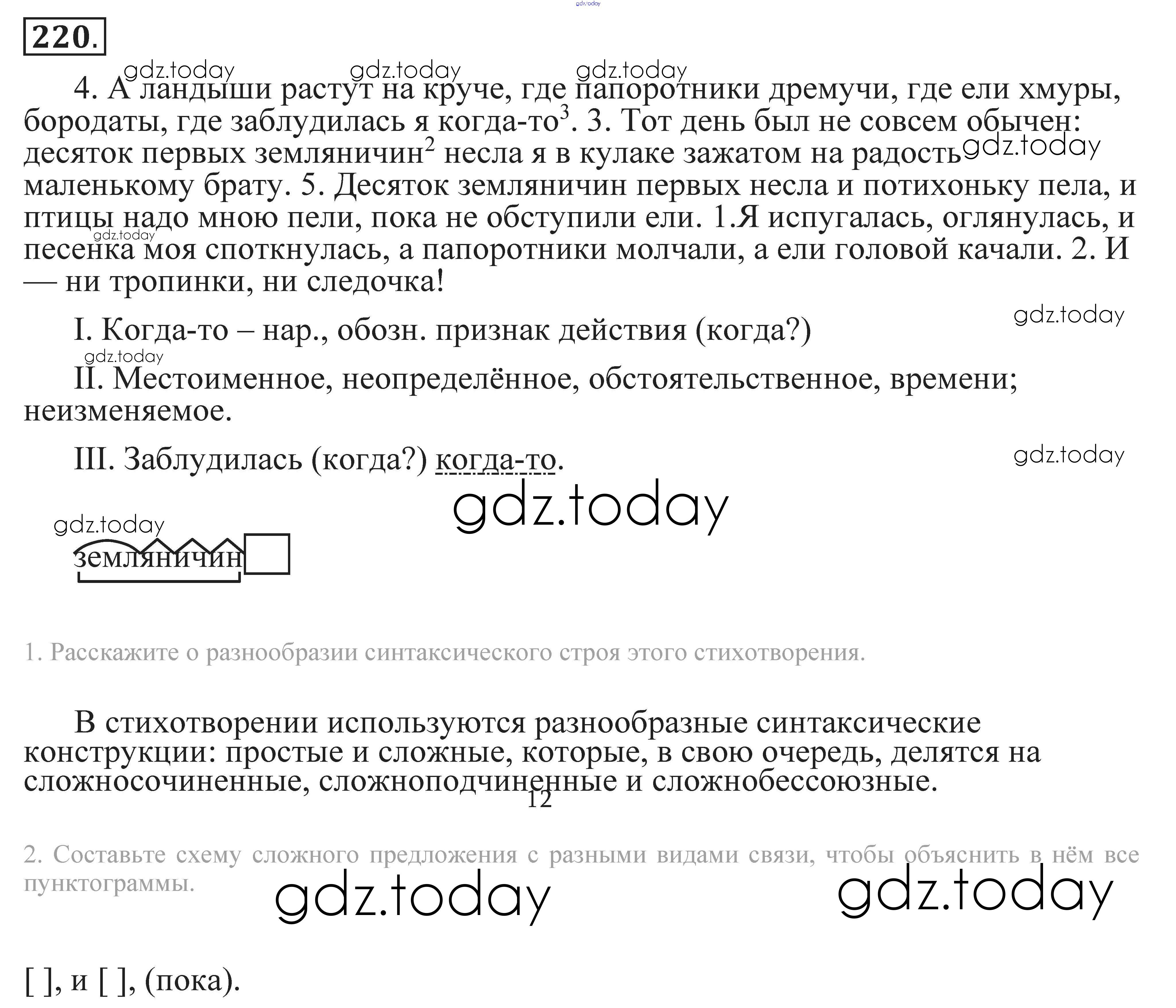 На страницах сайта gdz.today вы найдете учебный и вспомогательный материал, направленный на улучшения знаний школьной программы. ГДЗ - онлайн мир знаний Решение. Упражнения 220 Практике по Русскому языку для 9 класса Пичугов, Еремеева Просвещение, Дрофа 2022, 2012
