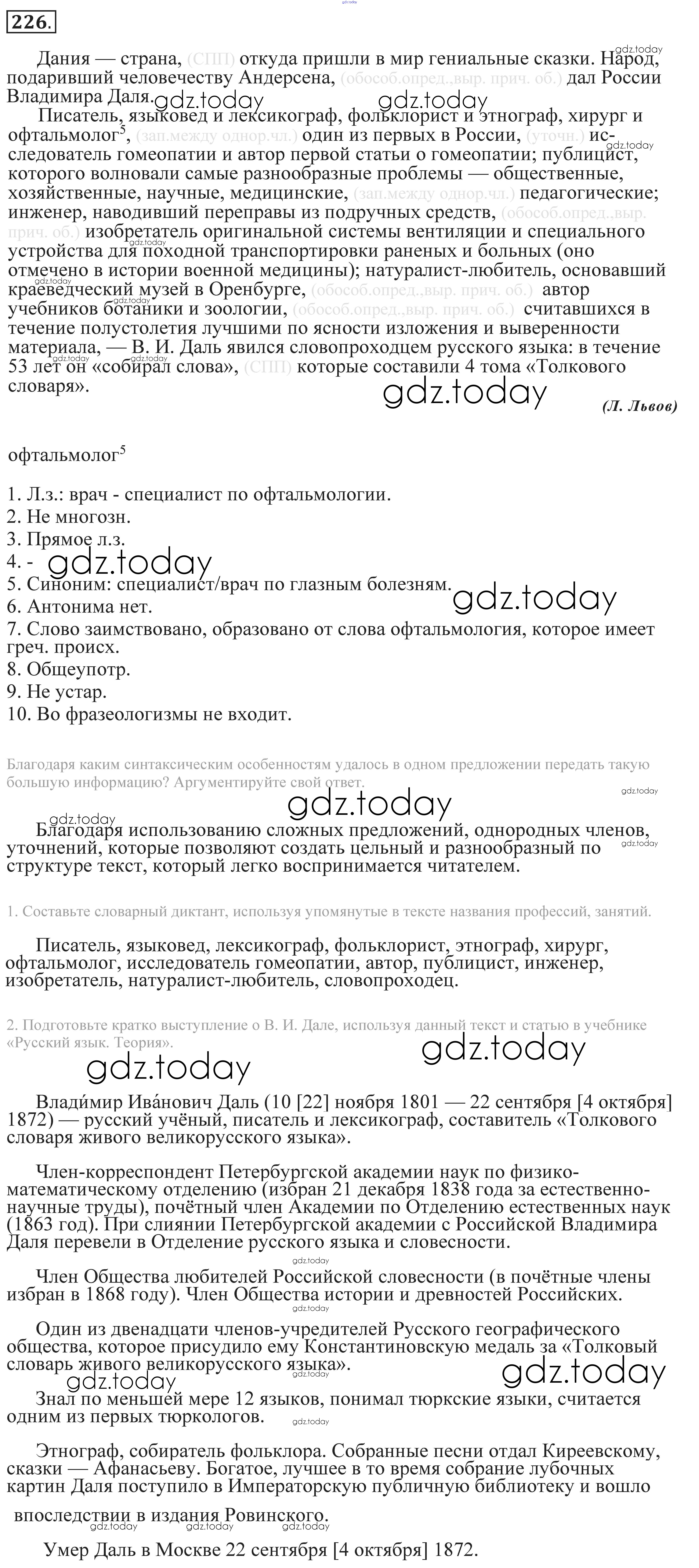 Ответы к Решение. Упражнения 226 Практике по Русскому языку для 9 класса Пичугов, Еремеева Просвещение, Дрофа 2022, 2012