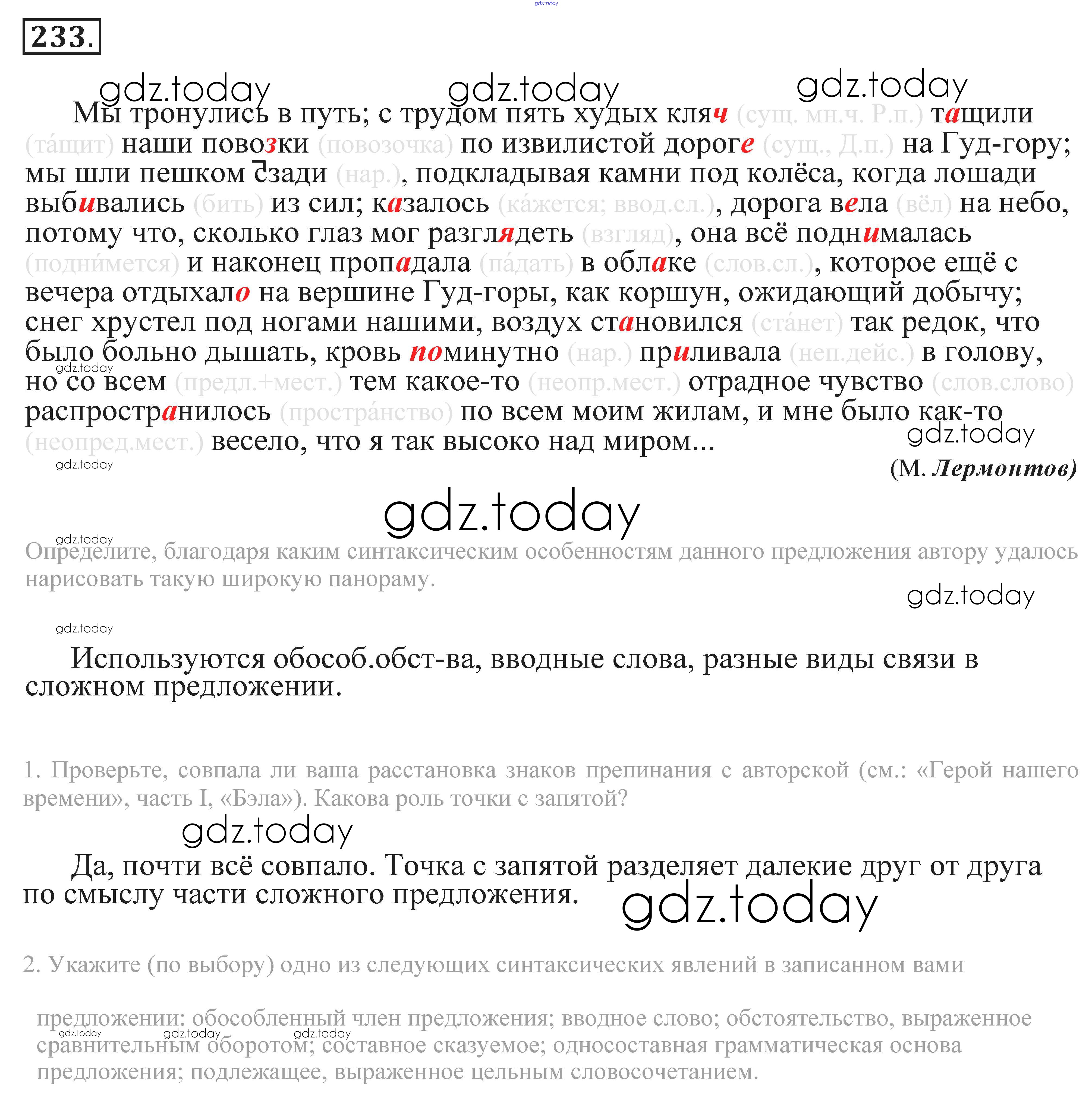 На страницах сайта gdz.today вы найдете учебный и вспомогательный материал, направленный на улучшения знаний школьной программы. ГДЗ - онлайн мир знаний Решение. Упражнения 233 Практике по Русскому языку для 9 класса Пичугов, Еремеева Просвещение, Дрофа 2022, 2012