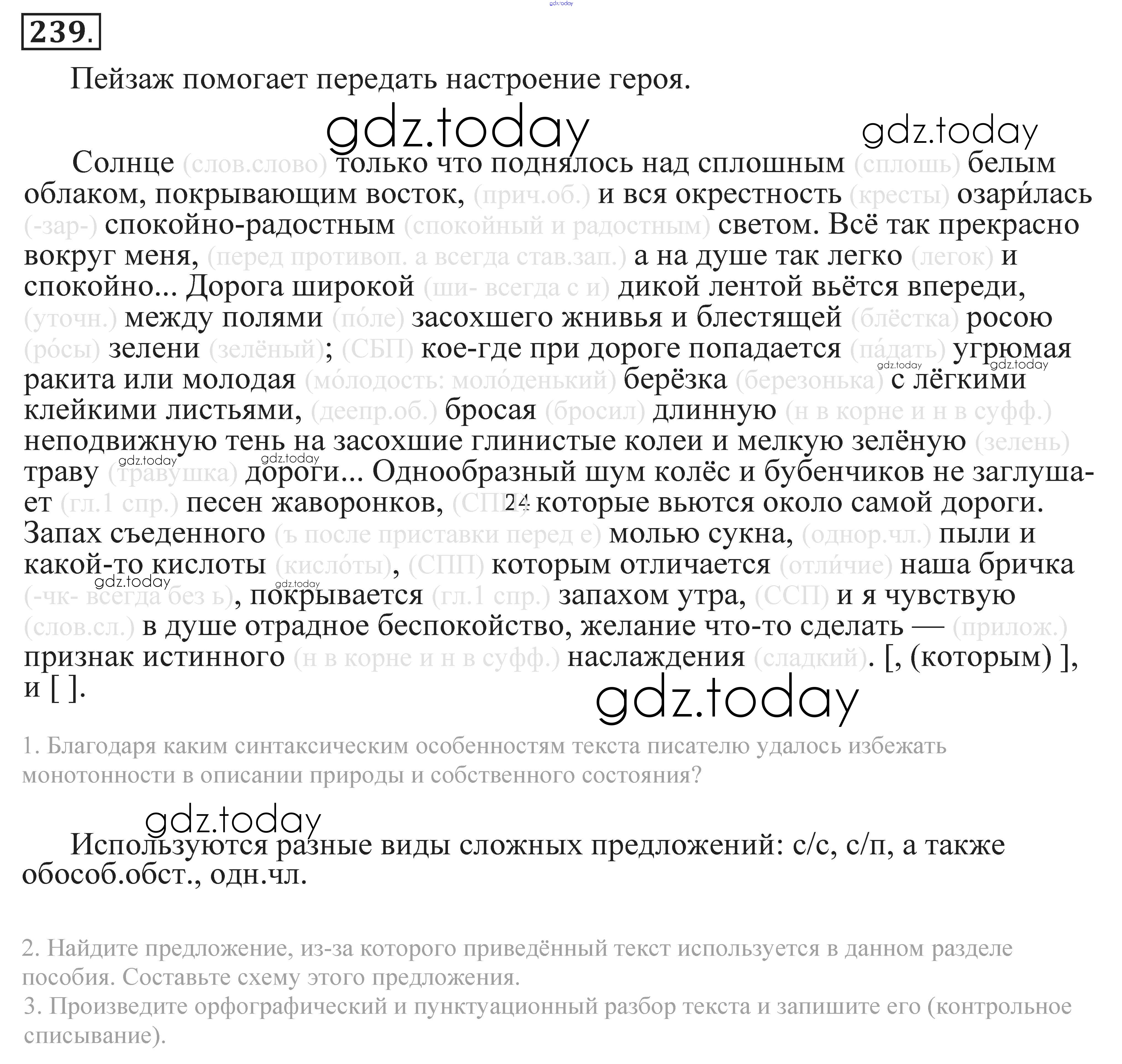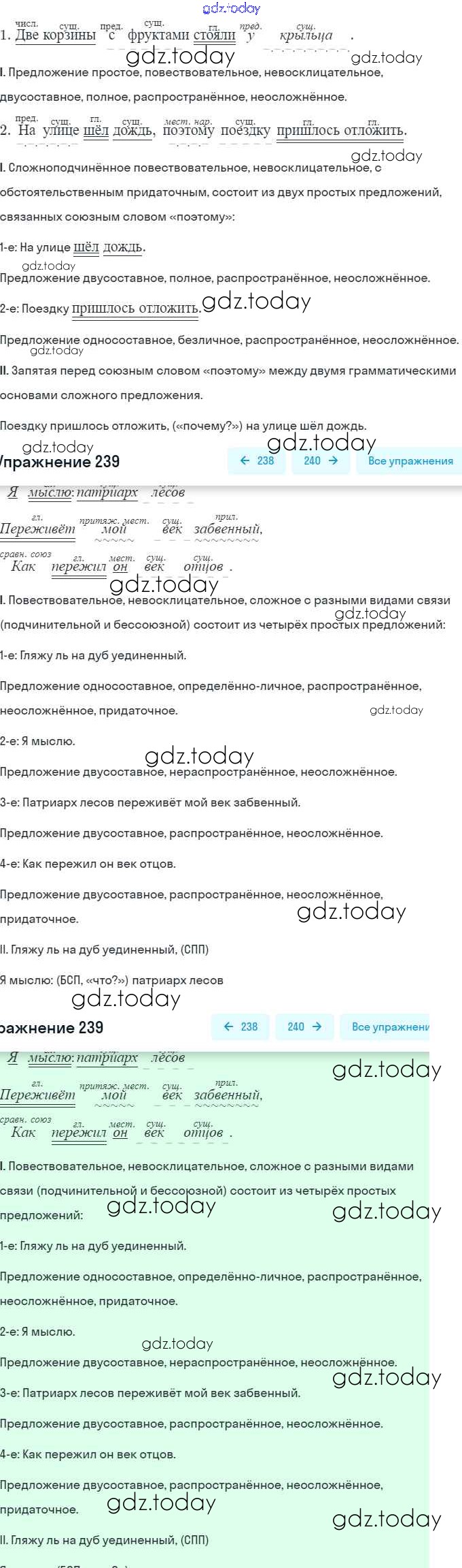 На страницах сайта gdz.today вы найдете учебный и вспомогательный материал, направленный на улучшения знаний школьной программы. ГДЗ - онлайн мир знаний Решение. Упражнения 239 Практике по Русскому языку для 9 класса Пичугов, Еремеева Просвещение, Дрофа 2022, 2012
